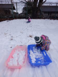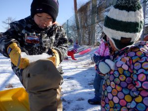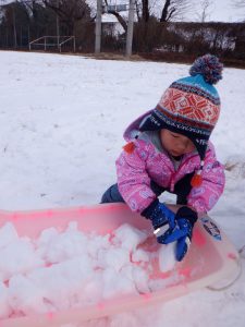 雪遊び、ソリ滑りが大好きで寒さにも負けず