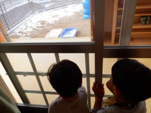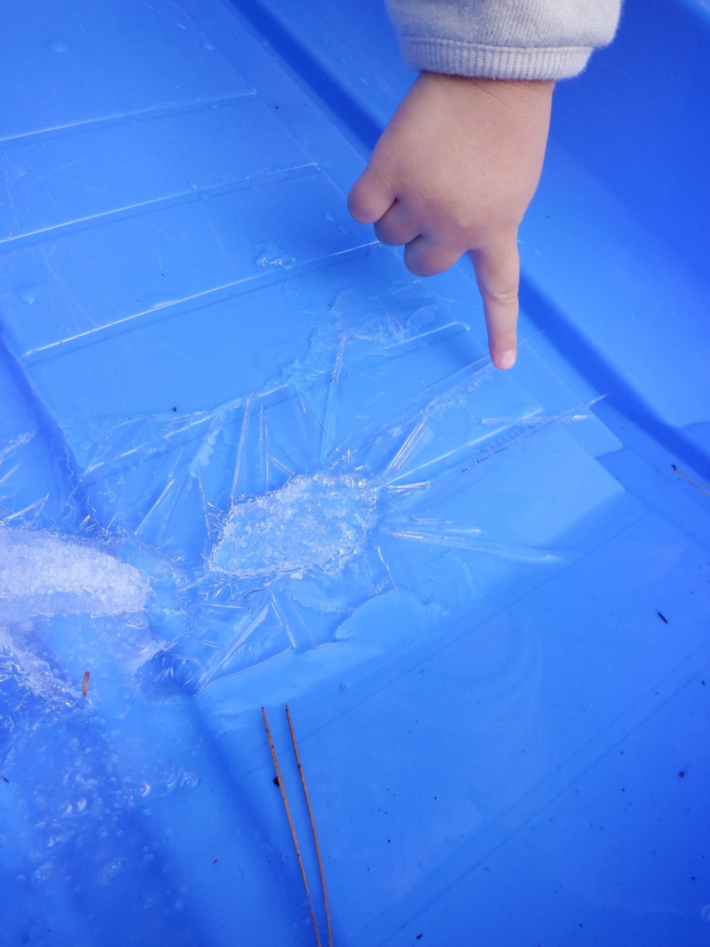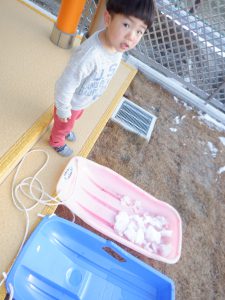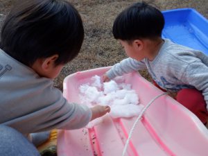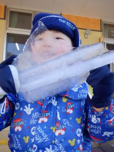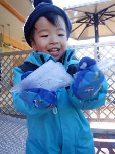 戸外遊び中 氷を離さず、ずっと持ち歩いている子もいたんです