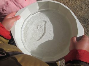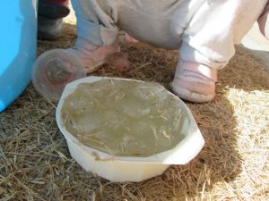 お友達といっしょに氷でお料理をしている、はぁちゃんとゆっちゃん。