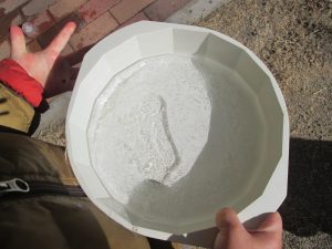 容器の表面は凍っているけど、中は溶けて水が動いていました。