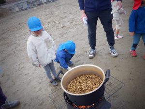 ・節分の鬼は皆怖いけど、木の枝を拾う。豆を炒ってまくということで、豆まきに向かう気持ちにつながっているように思う。