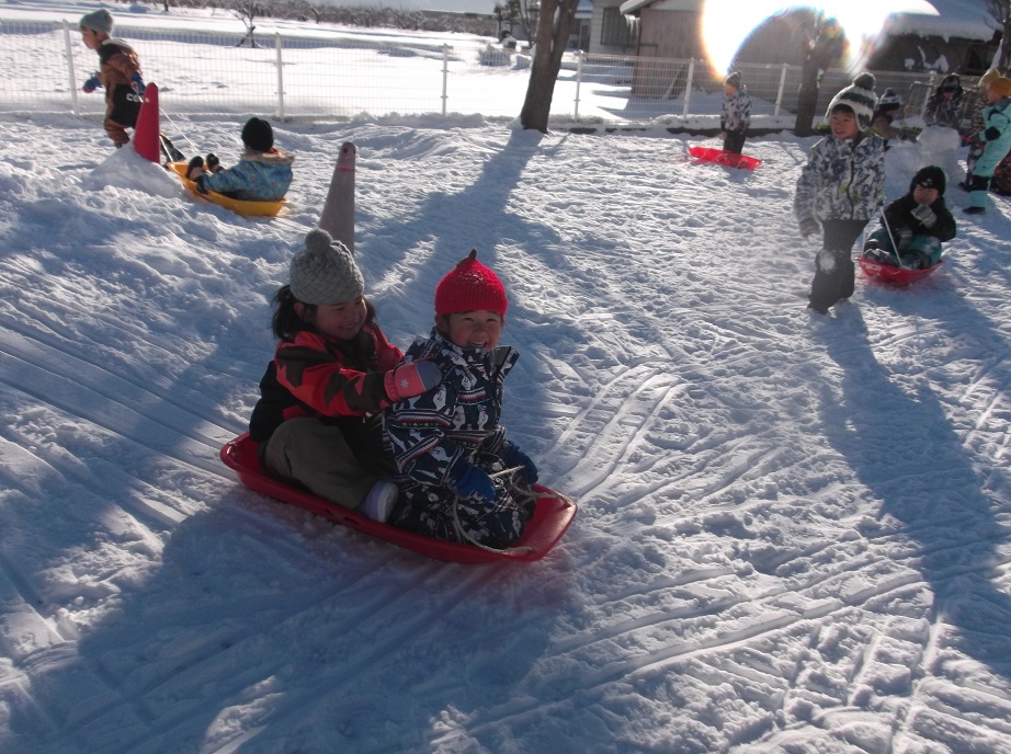 友だちと一緒にそりで滑ったり