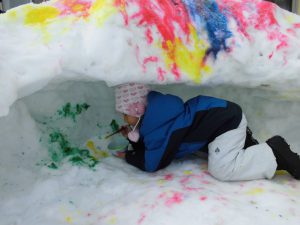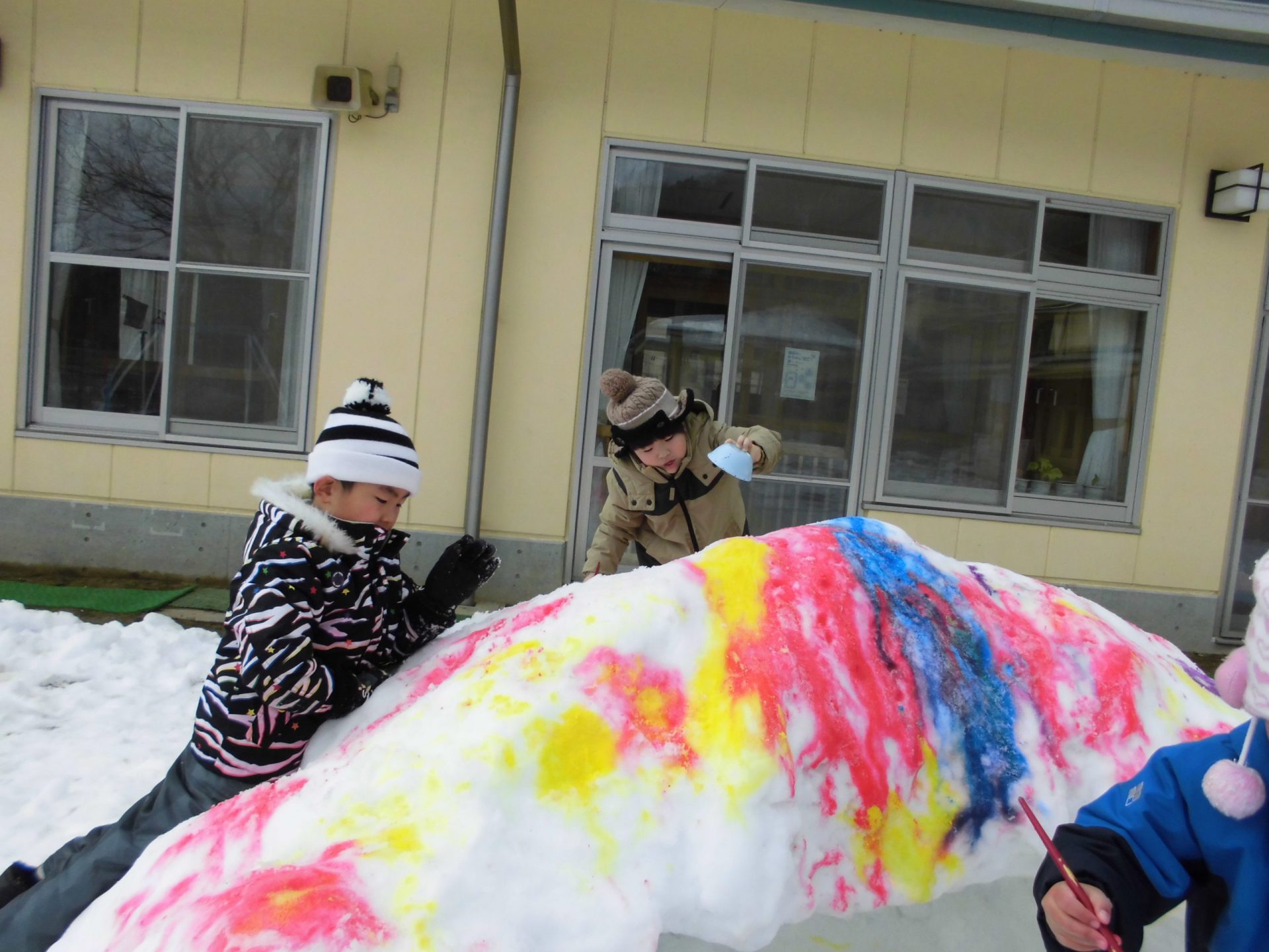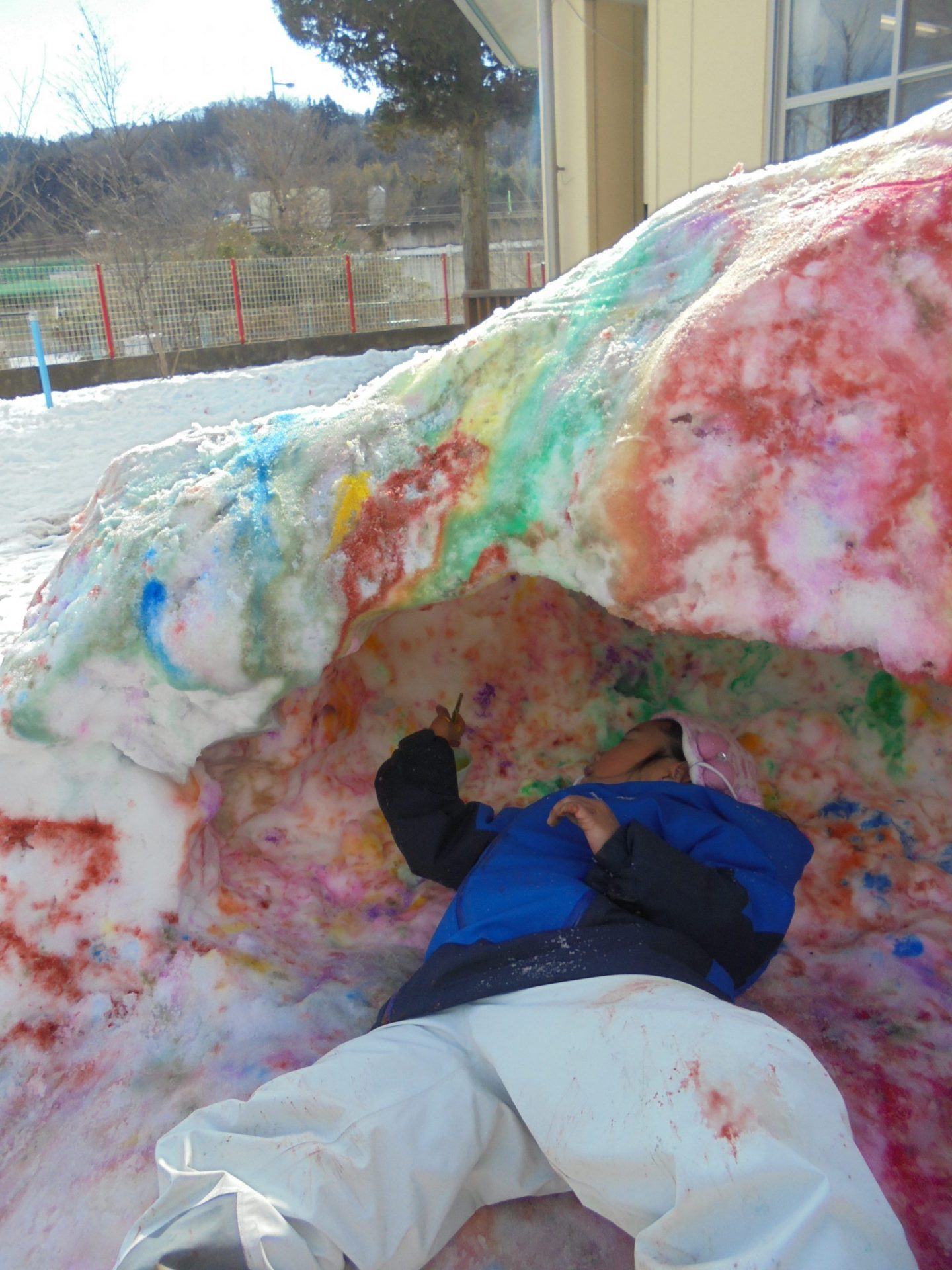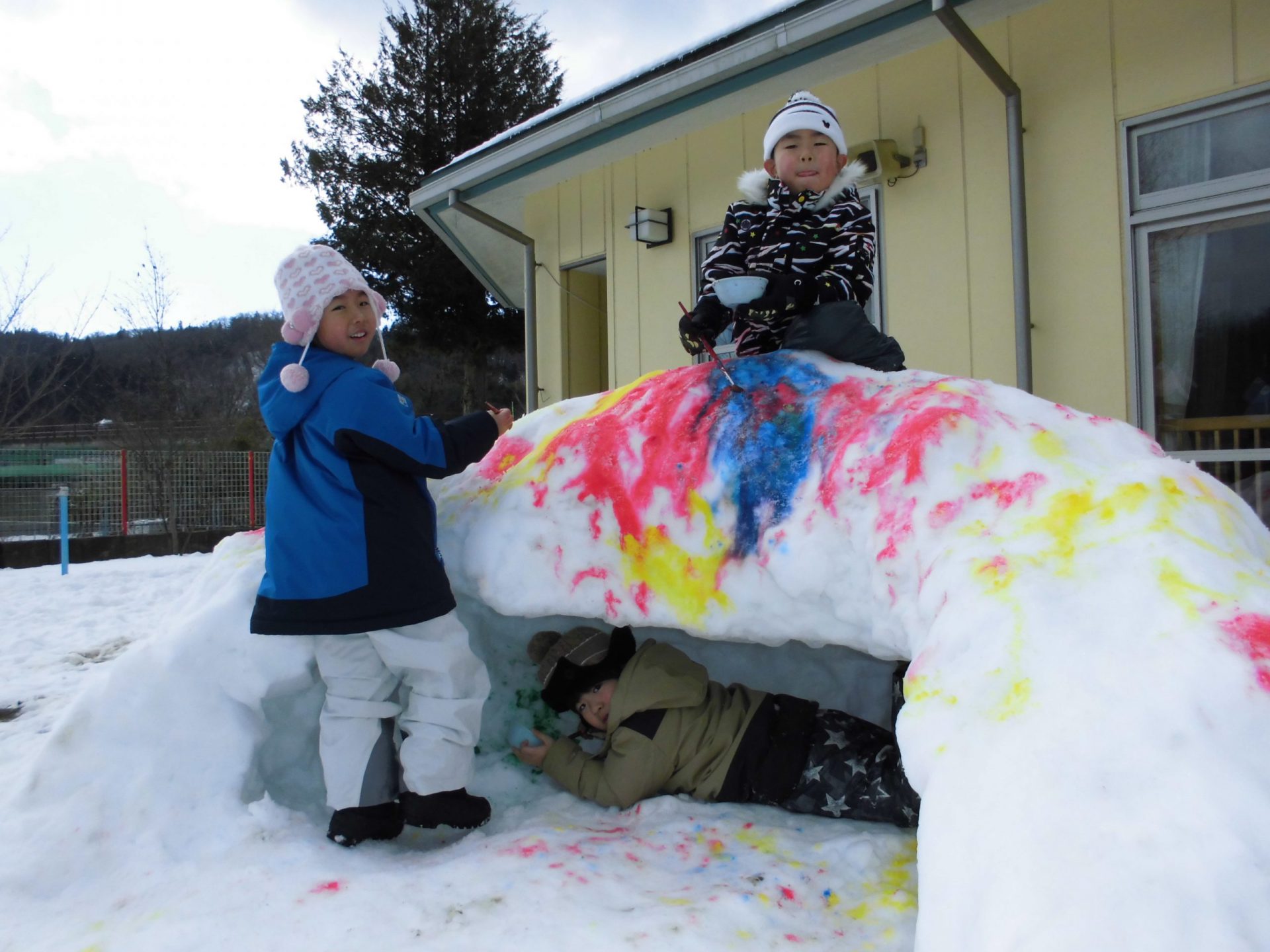 みんなで作ったかまくらに『色をつけよう!』ということになり、ペイント開始🎨