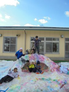 自分たちで作ったものを大切にしながら、作り上げていた子どもたちでした😊
