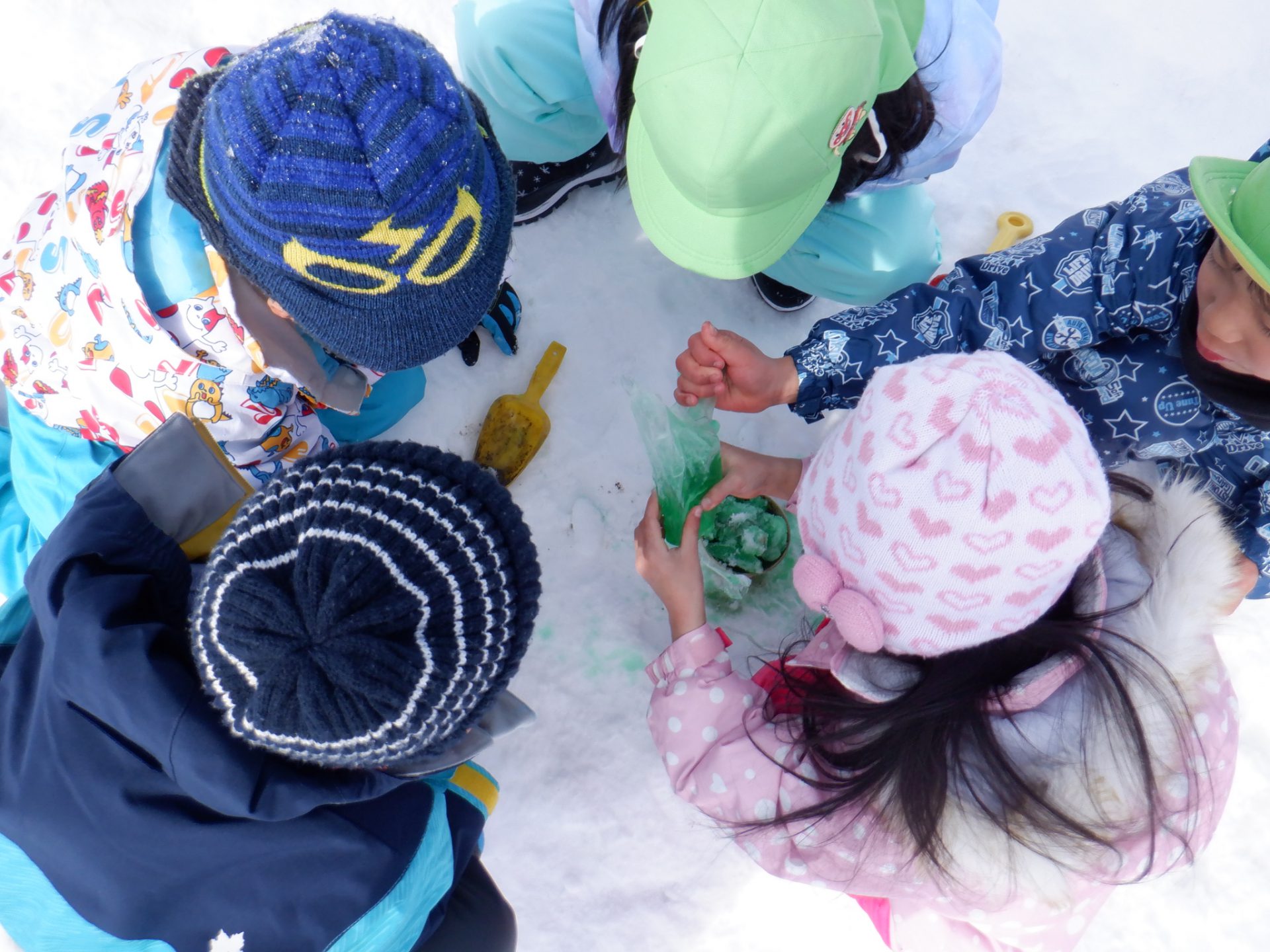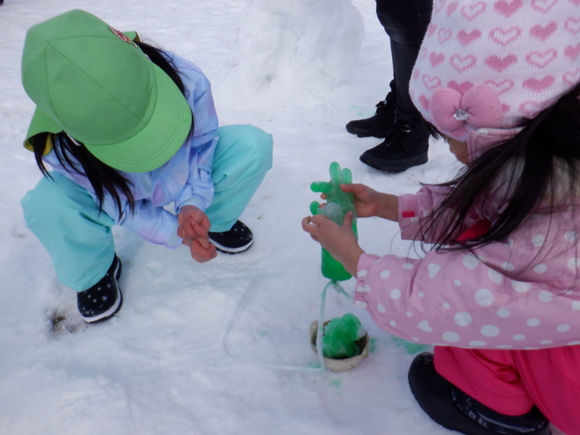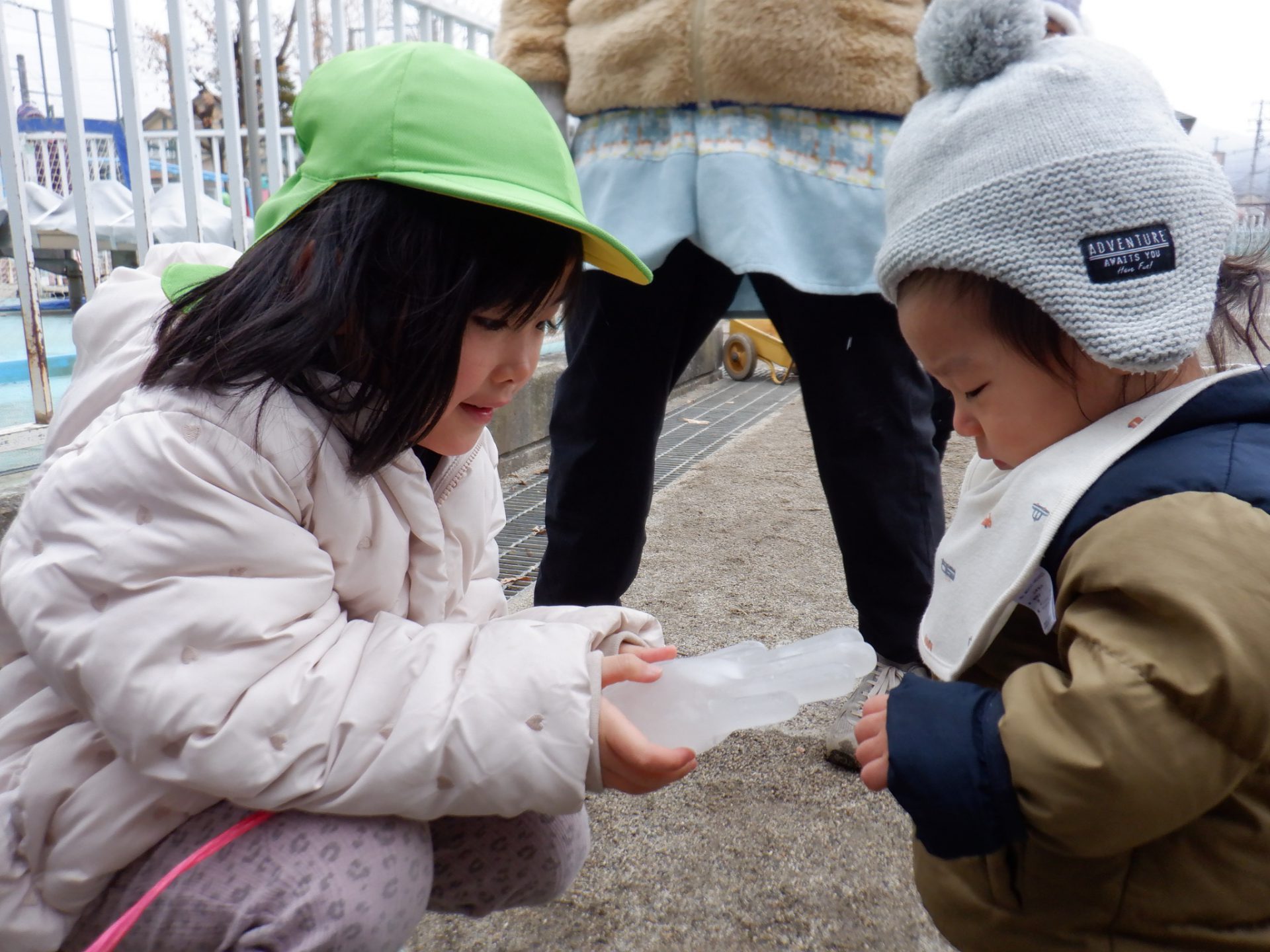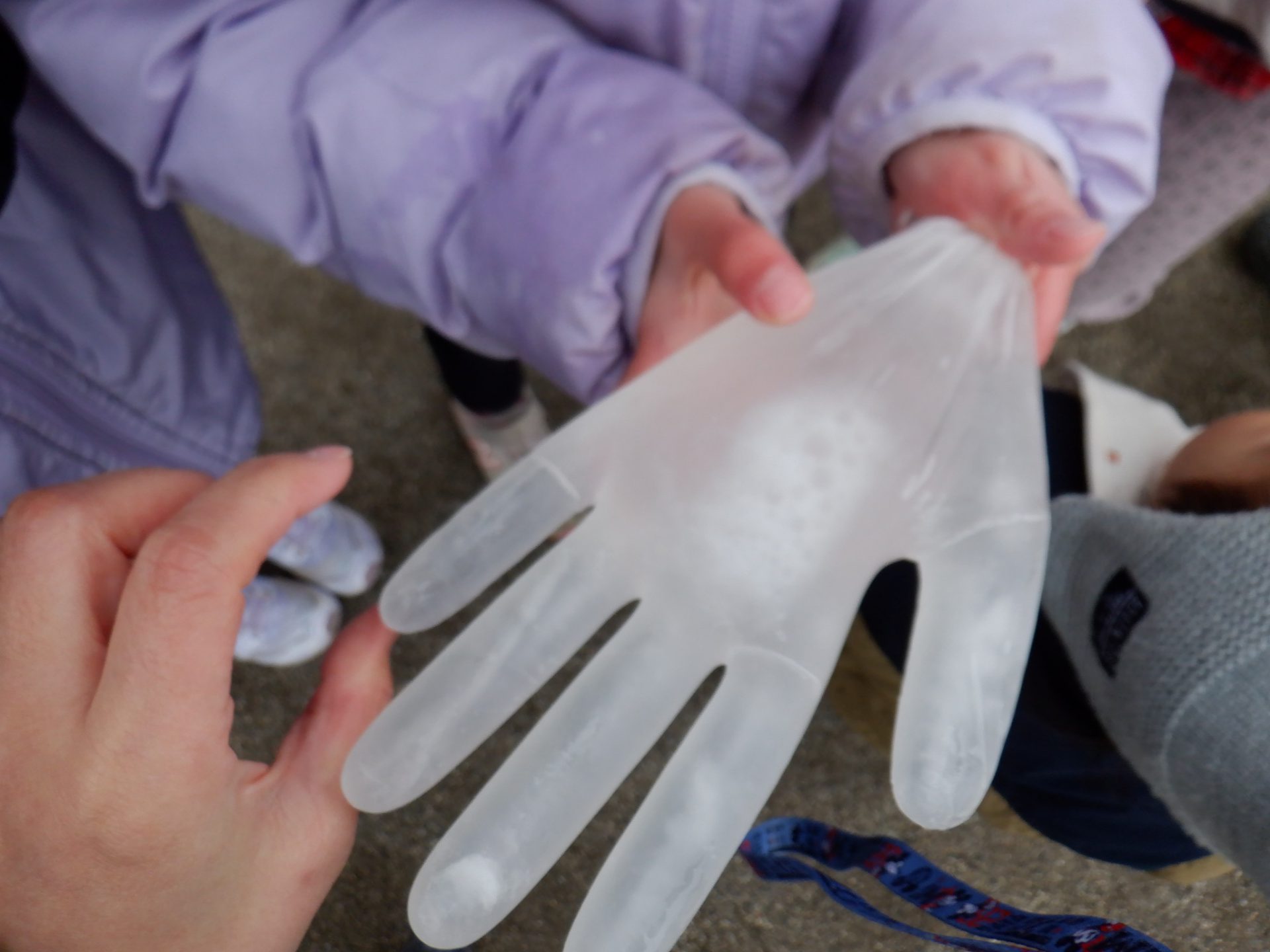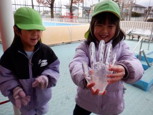 氷遊びは氷ができる仕組みを知ったり、感触を楽しんだりする機会となりました。