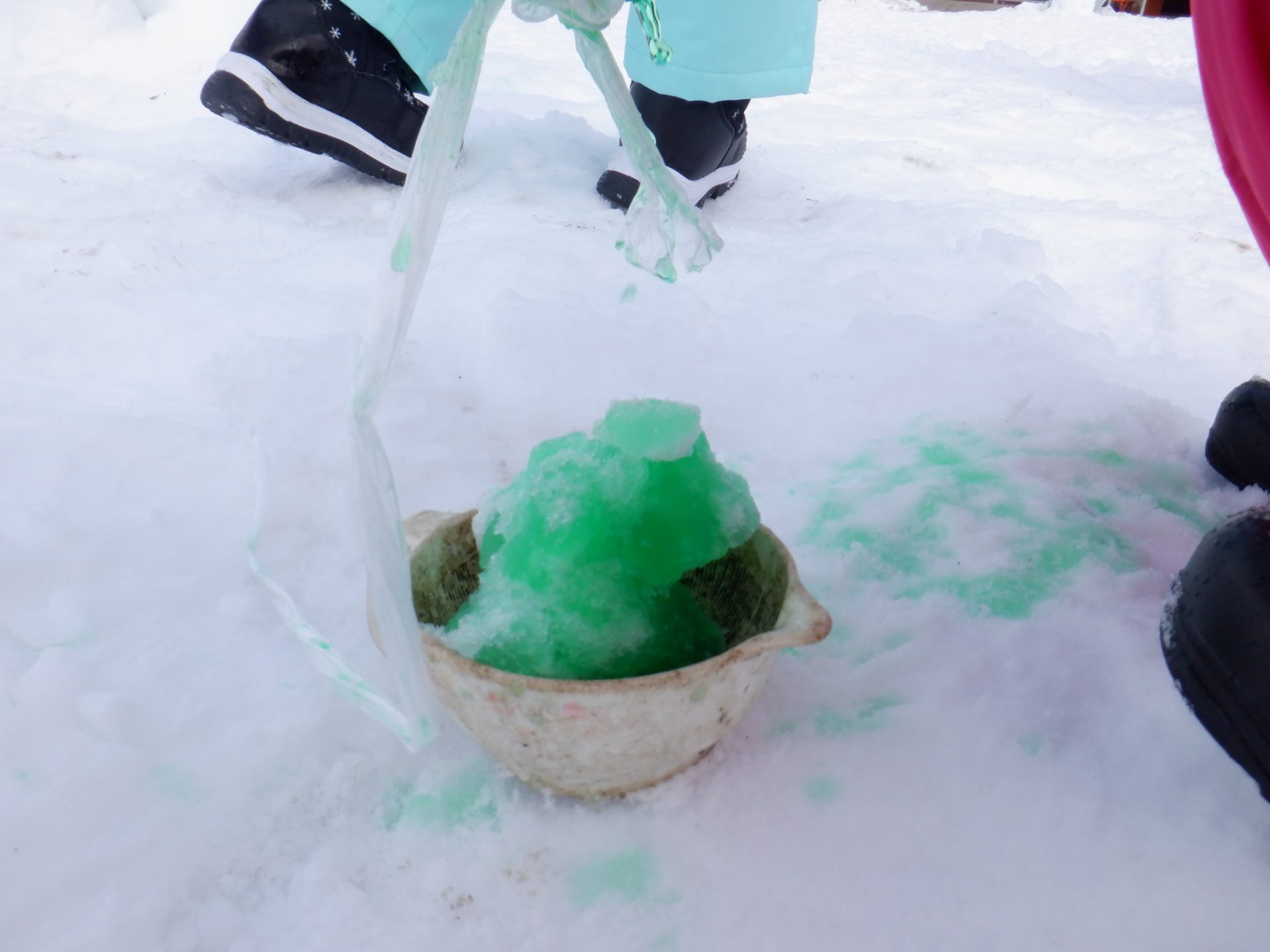 また、凍らせた時の気温によって、とてもかたい氷や、シャリシャリした柔らかい氷などさまざまな違いを楽しむことができました。