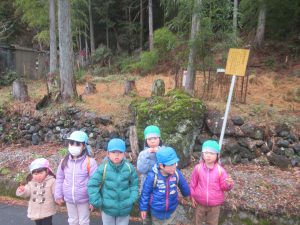 保育士が説明の看板を読んだり、どんな神様かを伝えたりすると、「水があふれませんように」「なくした人形が見つかりますように」とお願いしていました。霊場巡りをしていくうちに、「次は何の神様かな?」と楽しみにしている様子も見られました。保育園に戻り地図を見ながら「次はここに行こう!」と話す姿もありました。
