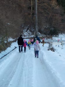 ・日陰には雪が残っていて、ツルツル滑るよ。