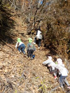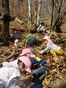 少し難しそうに見えた山登りを、〝やってみたい〟と挑戦する気持ちが芽生えた子ども達。今までの自分の経験から〝自分はできる〟と思える心が育っているのだと感じます。