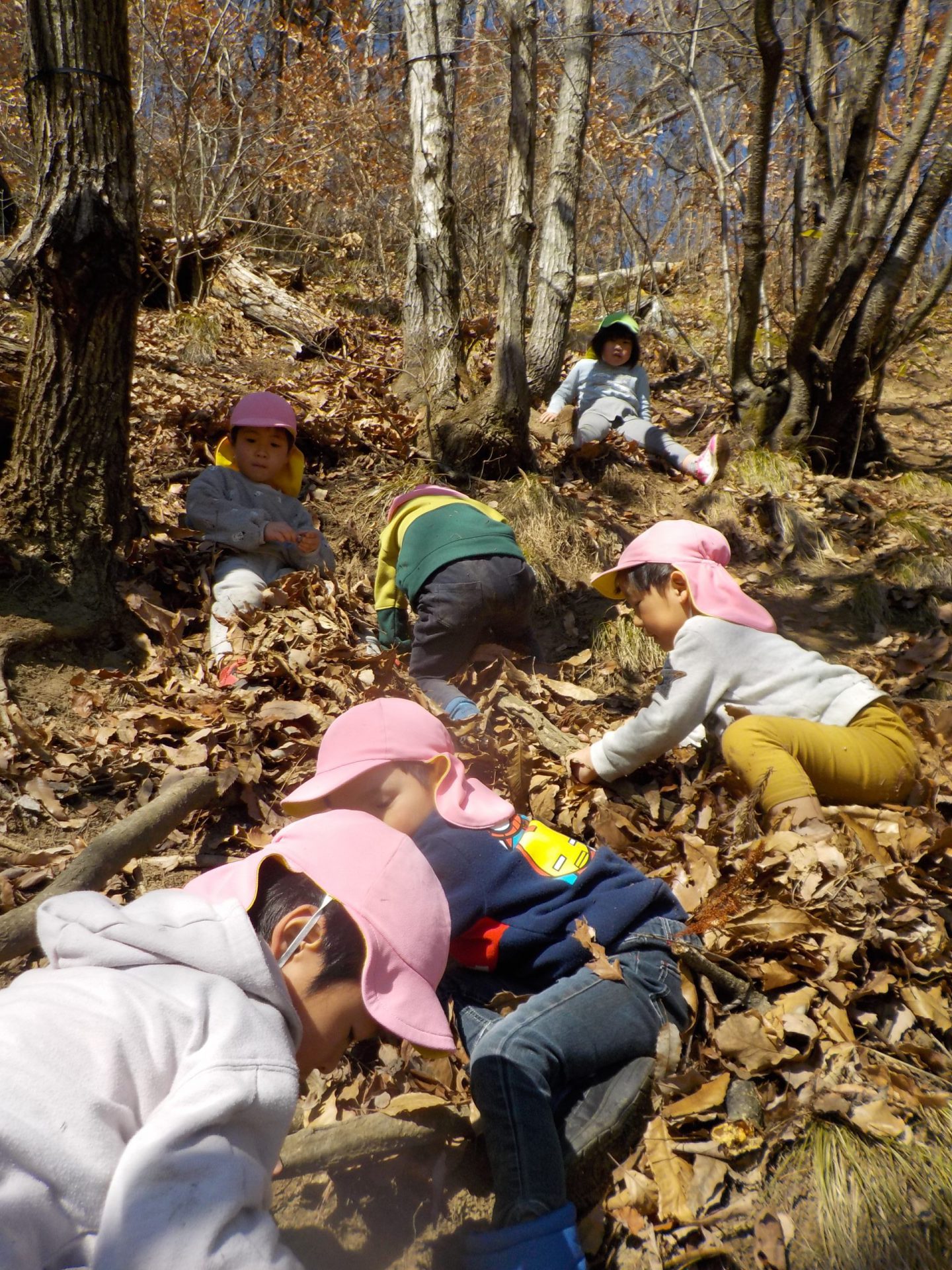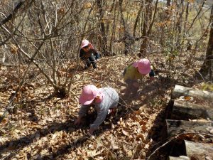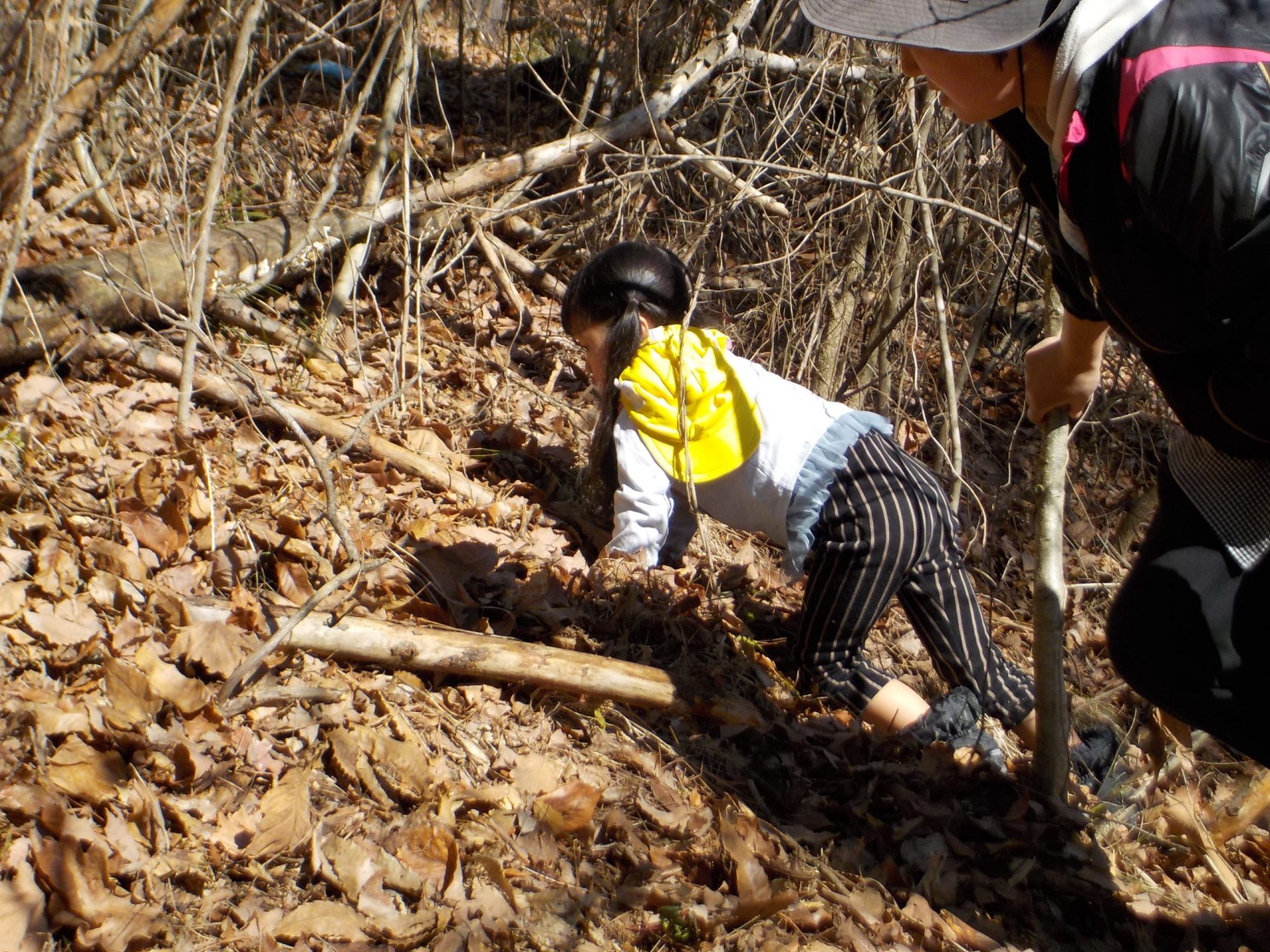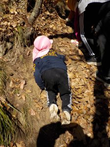 「今日もこの山登りたい!」と、保育士と一緒に登り始めました。