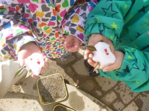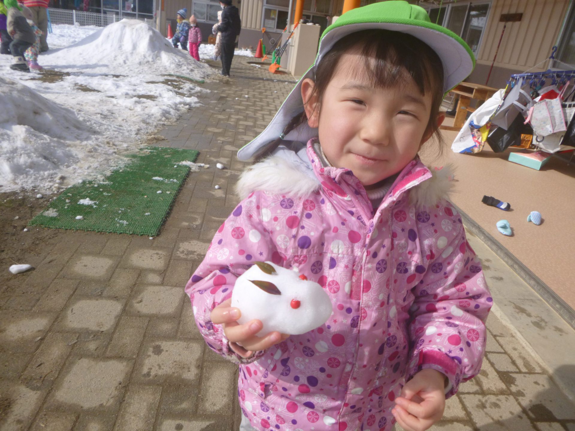 テラスに並べておいた雪うさぎさんたちはお迎えの頃にはいなくなっていました。