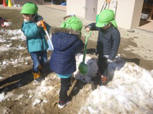 ・雪山で遊ぶために順番を守ったり壊さないように気をつけたりする姿が見られました。