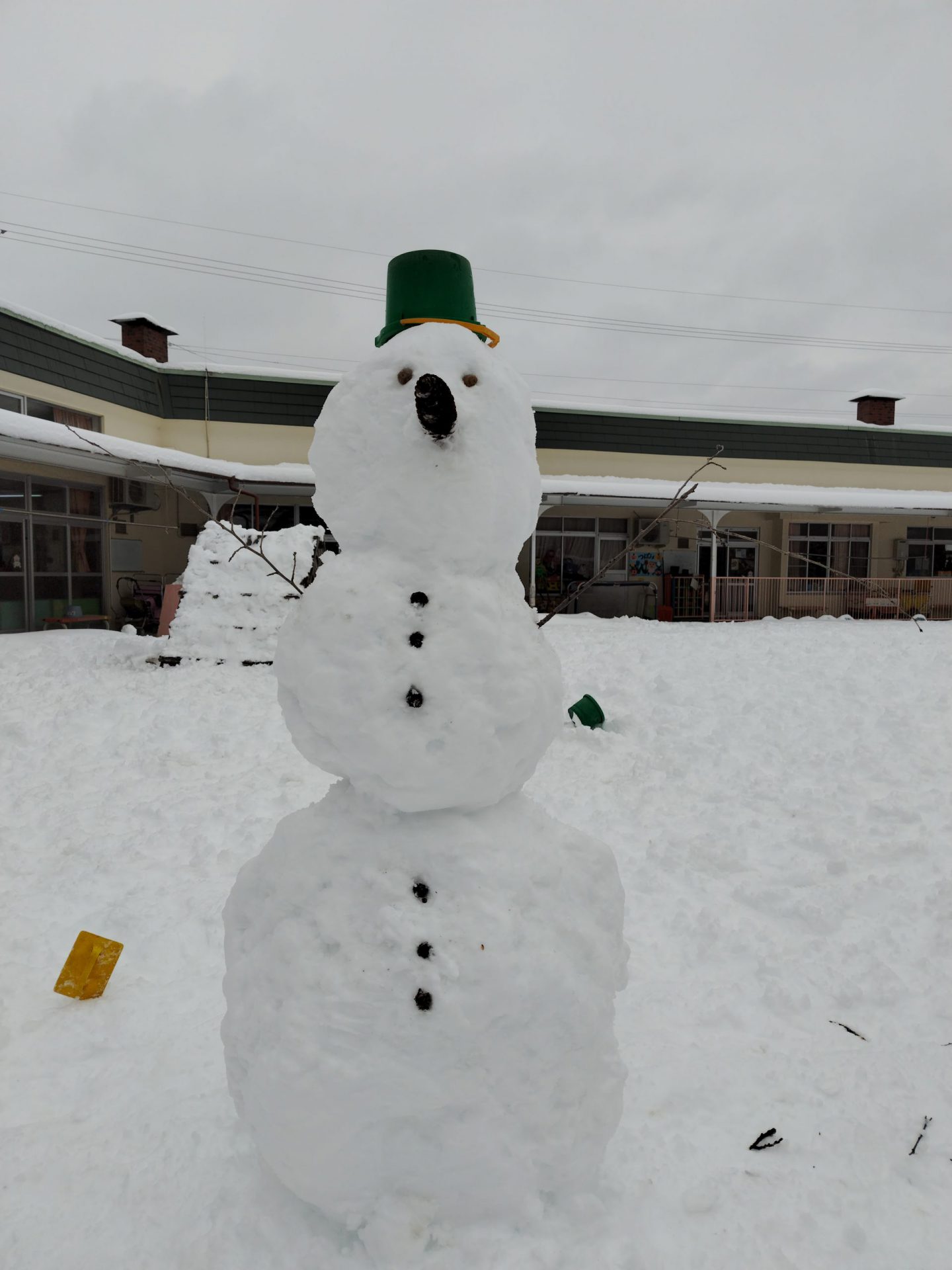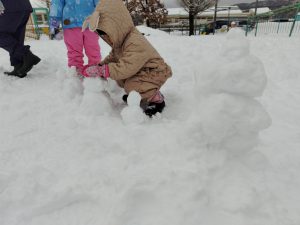 この雪だるまを真似て、年中さんたちも雪だるまを作っていました⛄️