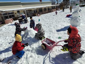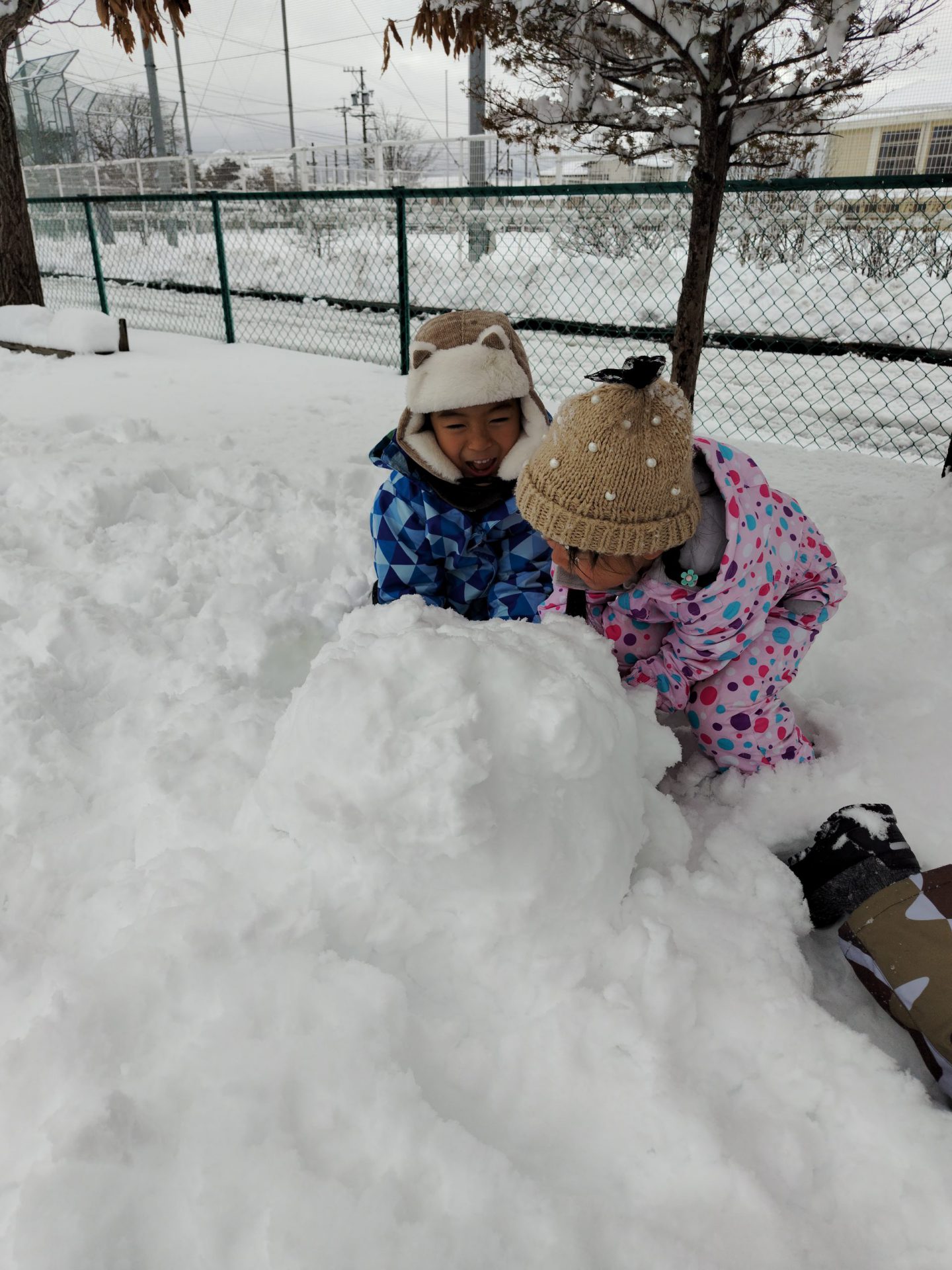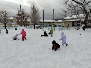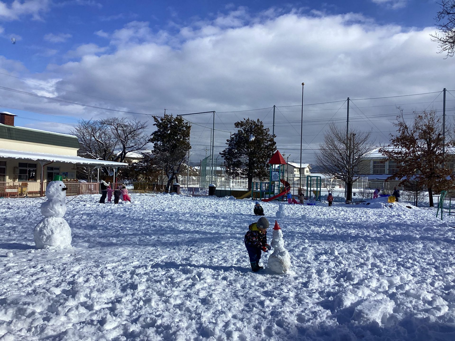 大雪警報が発令された日で、泉保育園の庭にも雪がどんどん降り積もりました❄️