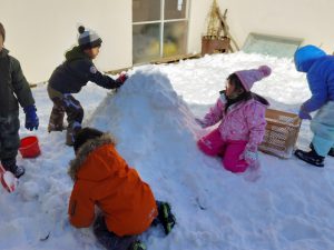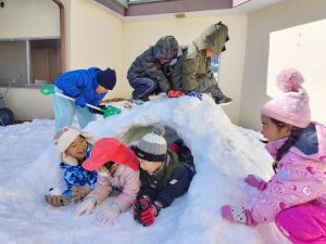 かまくらの上は“滑り台にしよう!”と工事している子もいました。