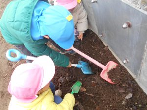 集まった場所は秋までよく虫探しをしていた園庭のはしっこ。