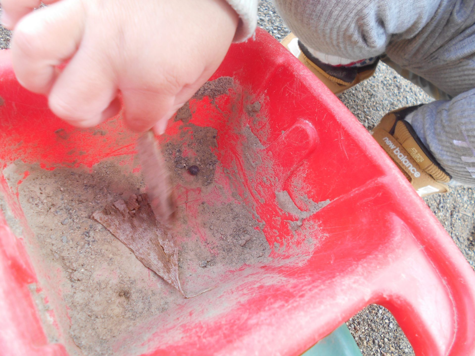 ・雪が溶けてなくなった園庭をみて、冬前に楽しんでいた虫探しが再びはじまりました。