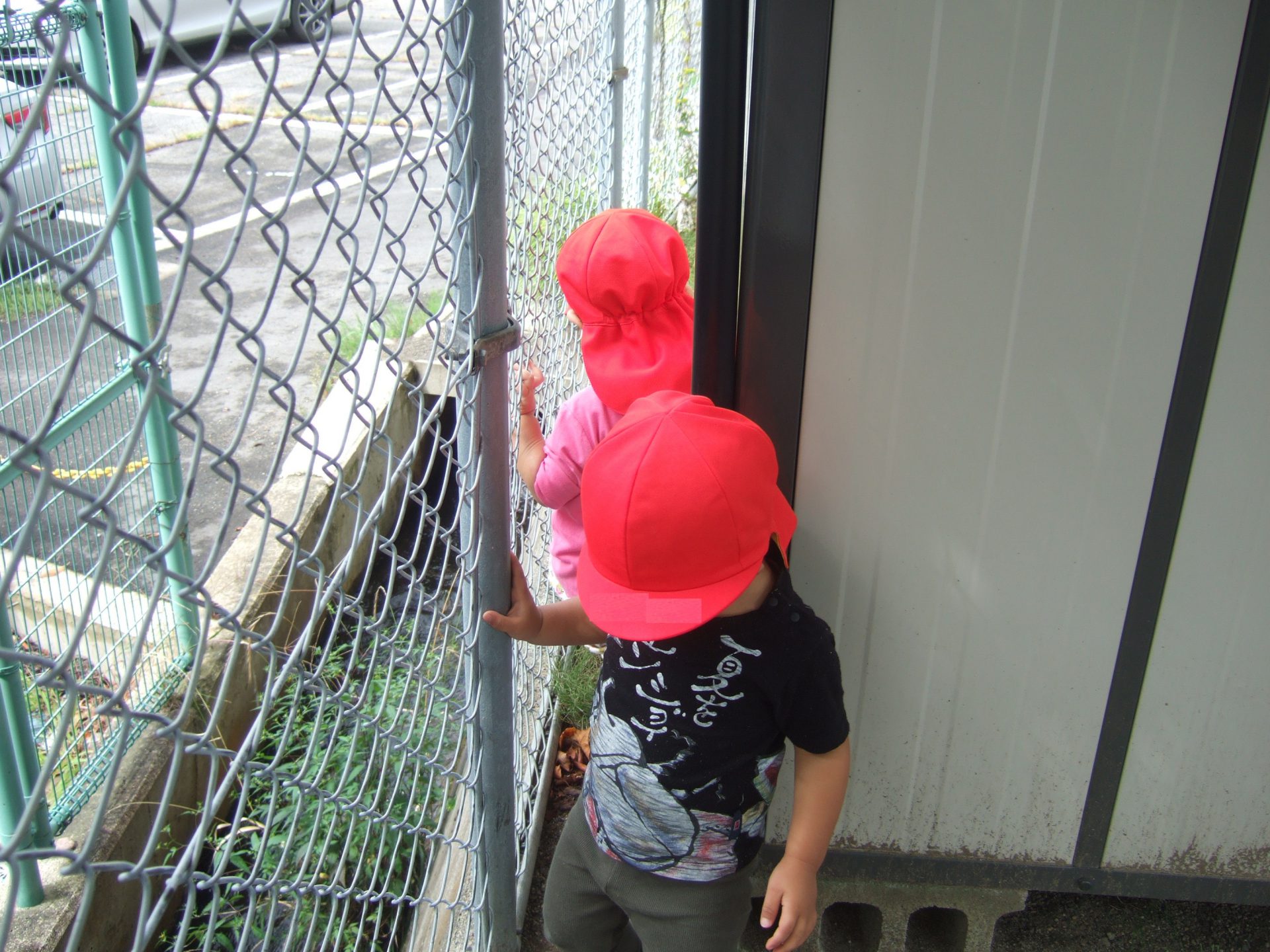 保育園の脇を流れる用水路を眺めたり、と興味津々。