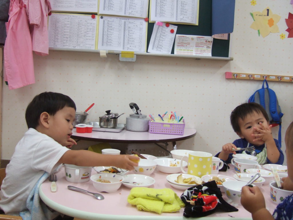 手づかみ食べでダイナミックに食べる子ども達でした。
