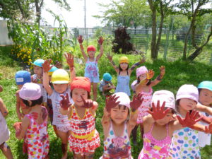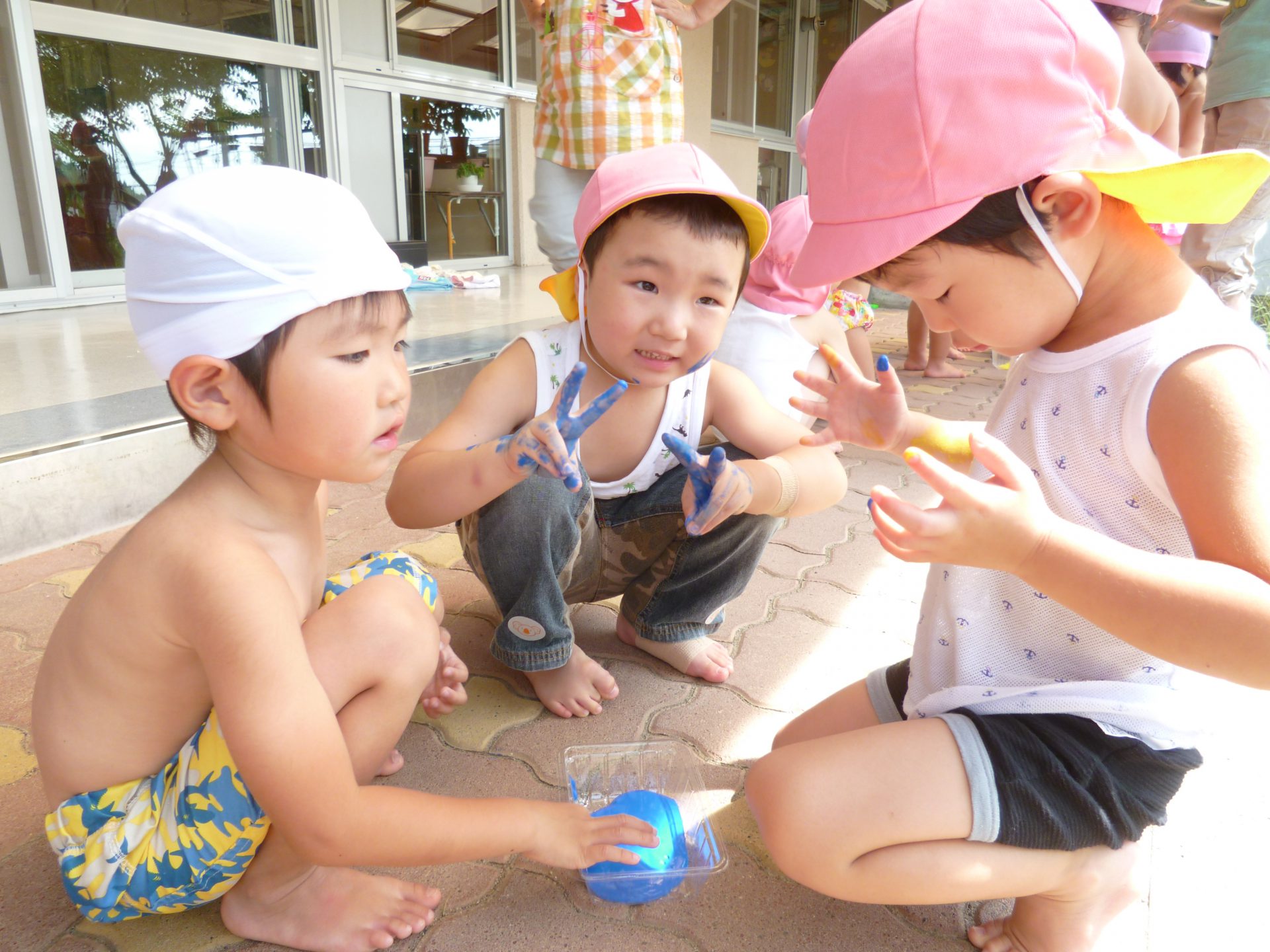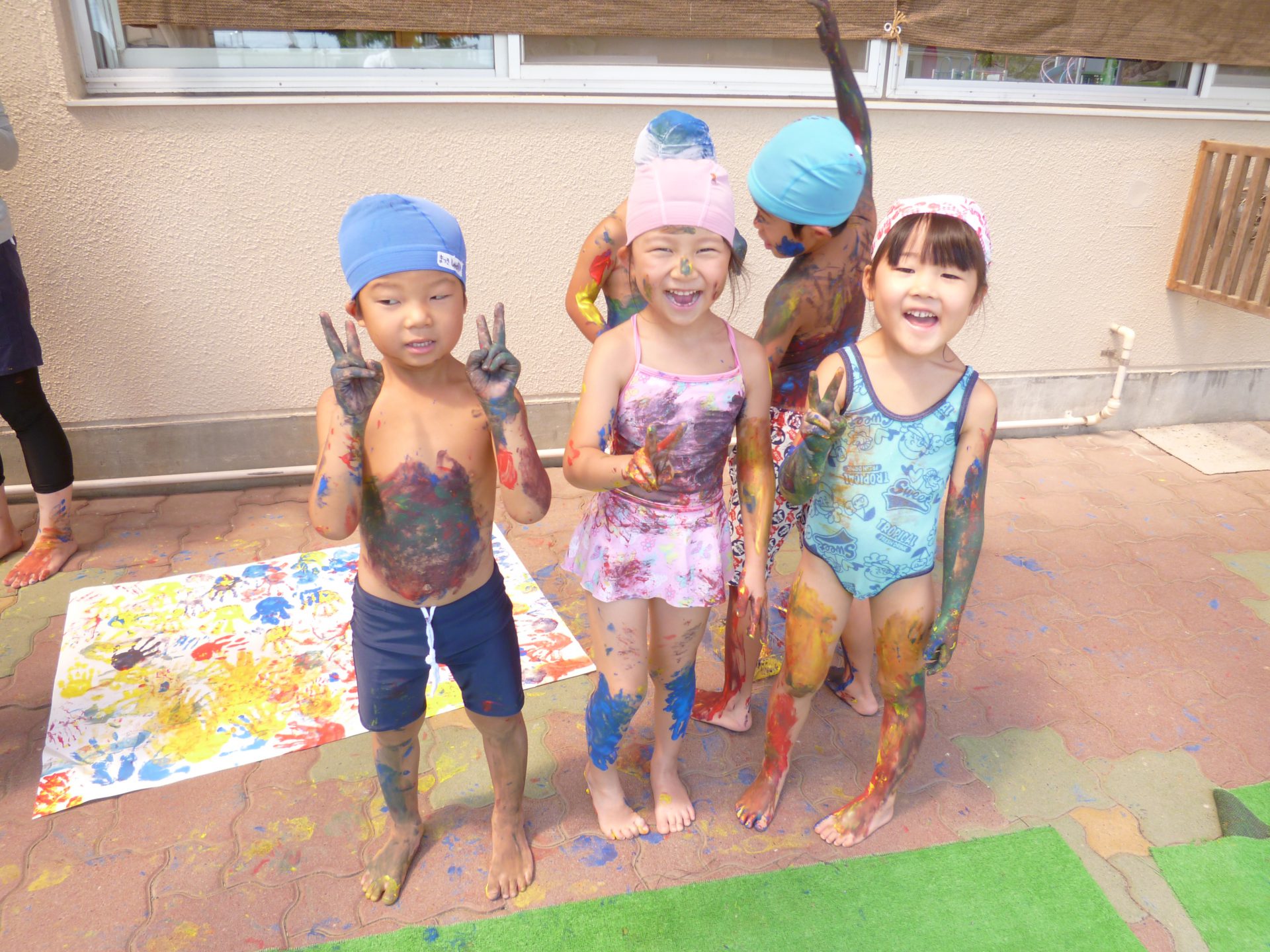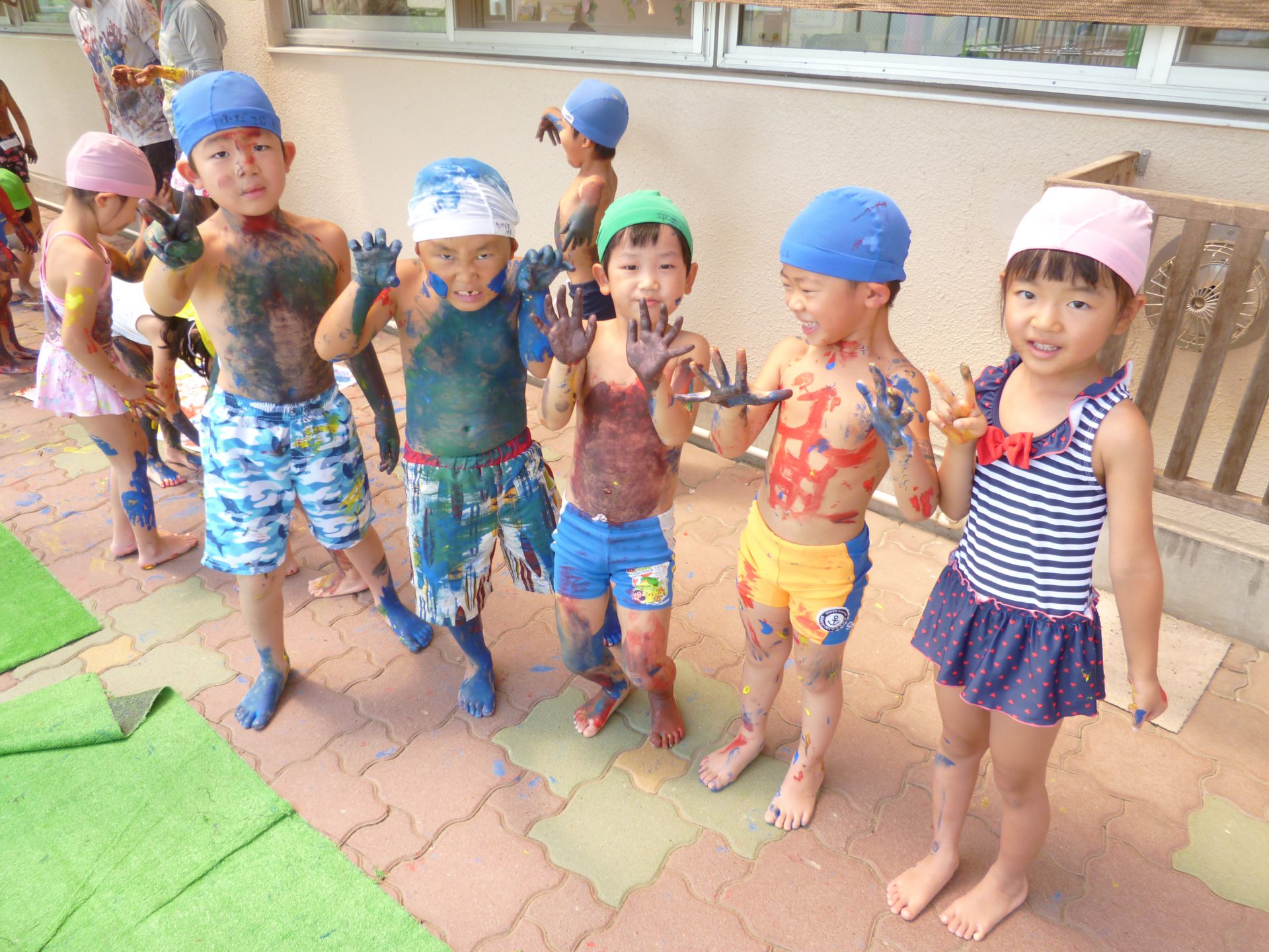 絵の具が体から落ちる面白さや、水の色が変わっていく楽しさも味わいました。