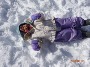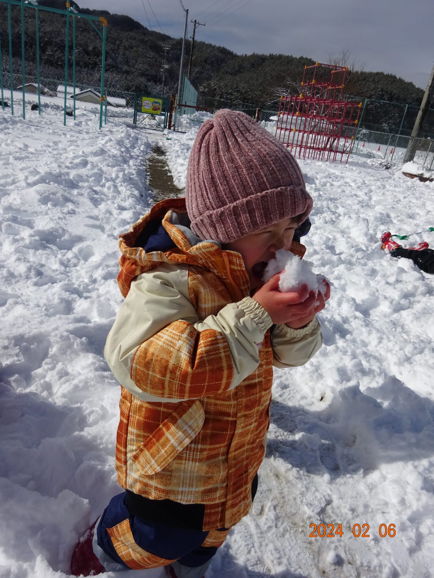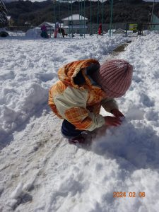 触れてみたり転がってみたり食べてみたりと子どもたちはひとりひとり雪遊びを楽しんでいました。寒さに負けず冬の楽しさを味わうことができ良かったです。
