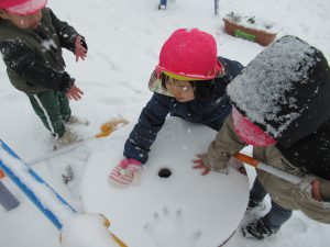 ・雪の冷たさや不思議さを体感し、雪だるま作りやそり遊びなど雪ならではの遊びを楽しむ。
