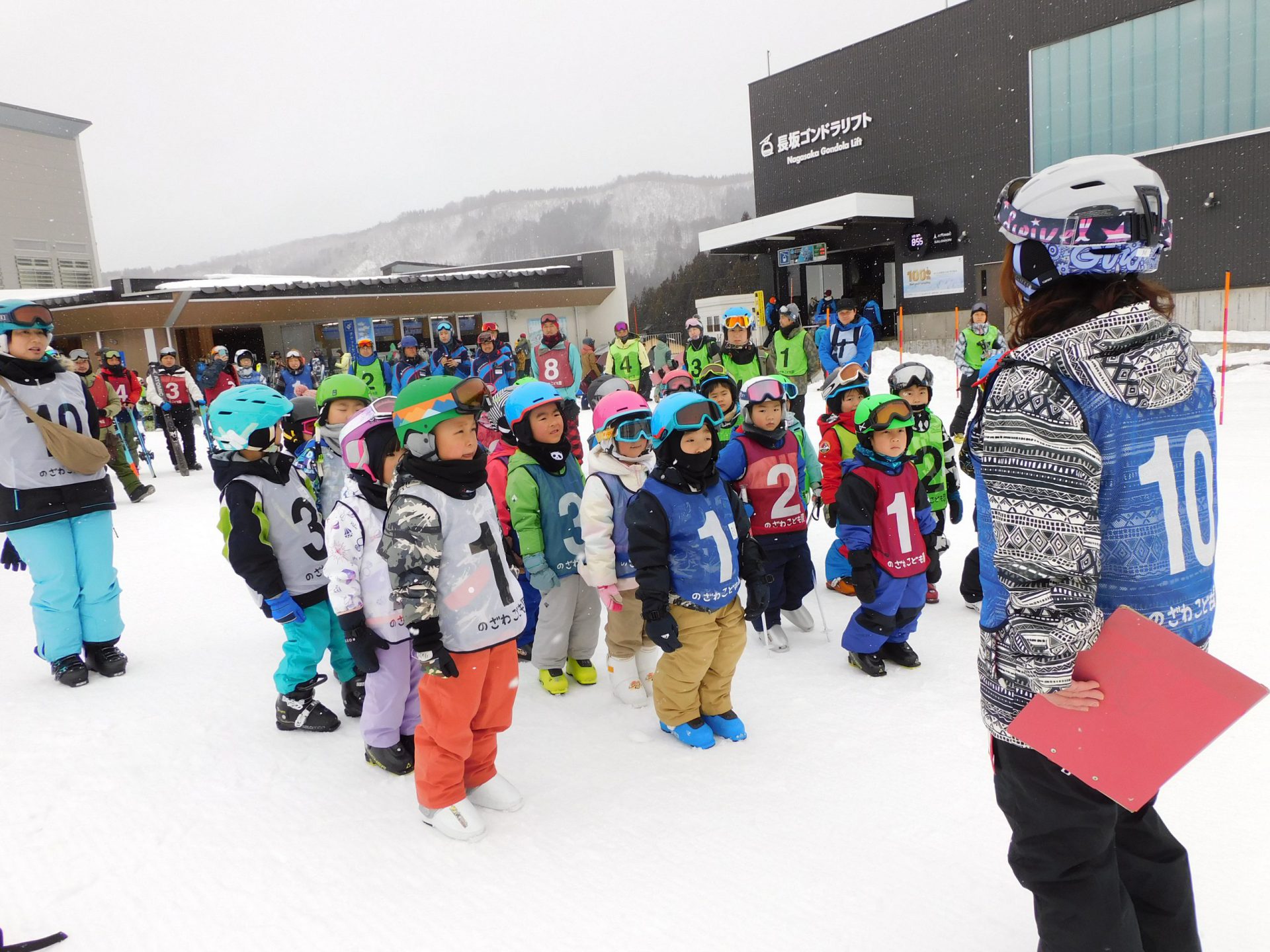 グループ毎に、スキースクールのコーチから指導を受け、