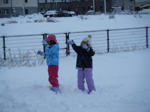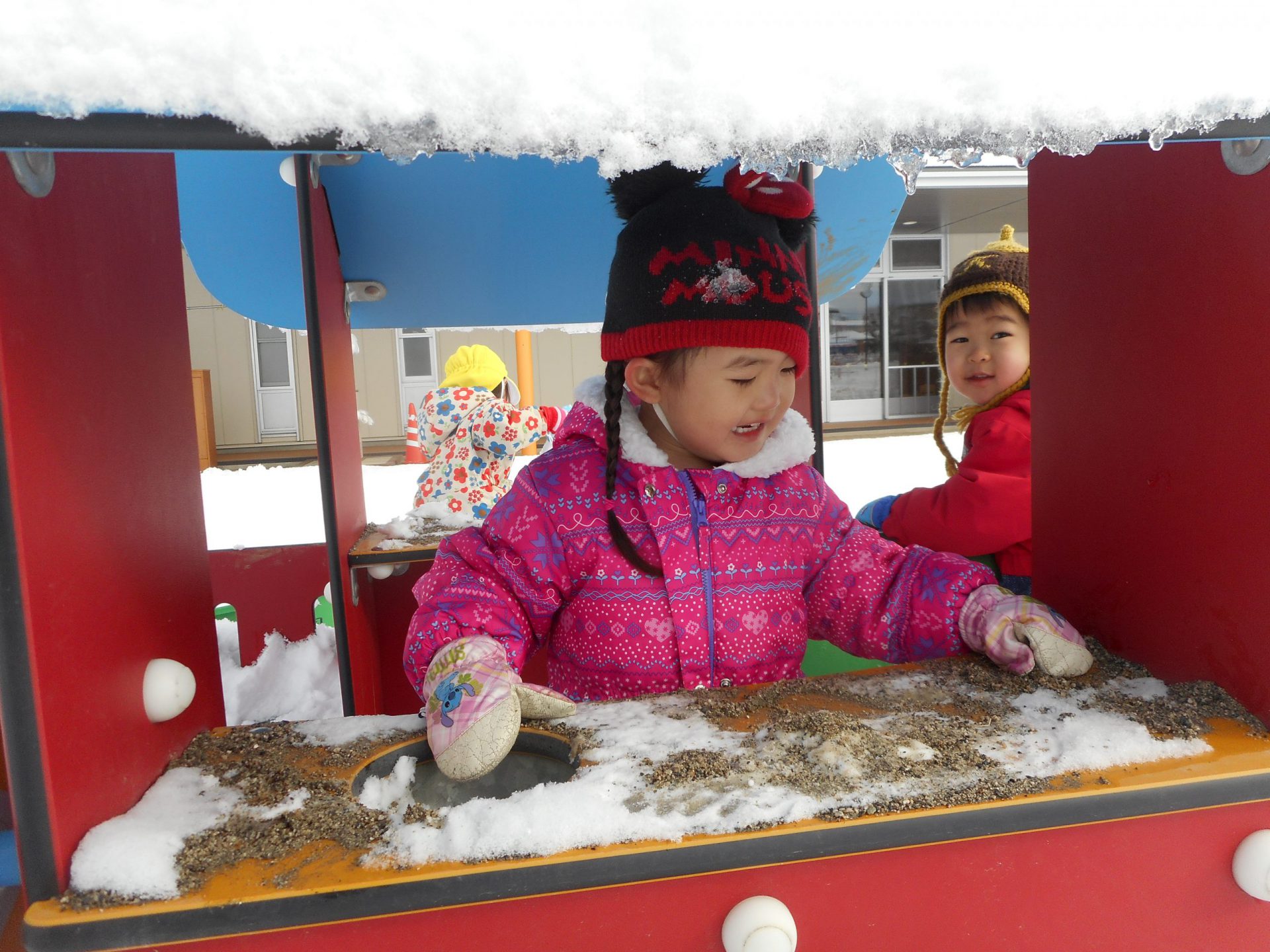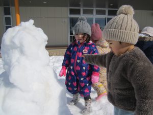 「みてー!きょうりゅうつくったよー」雪は色んな形に”変身”するね。