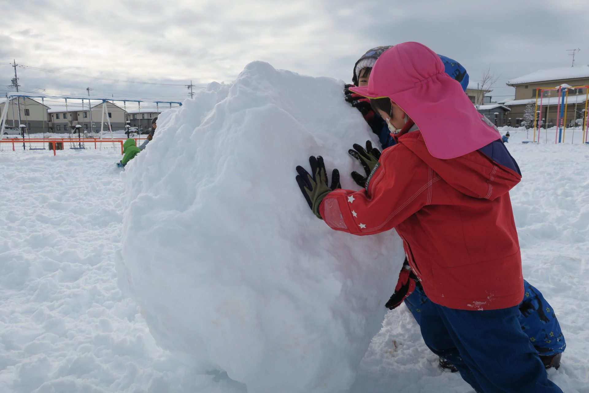 転がせば転がすほど、雪がついて、段々と大きく、重くなっていく雪の塊。