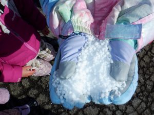 「先生!見て!まんまるの雪?氷の粒?塩カル?みたいなのが落ちてたよ」と見せてくれましたとっても寒い日には、降ってきた雪がそのまま凍ったような雪の粒が落ちています。