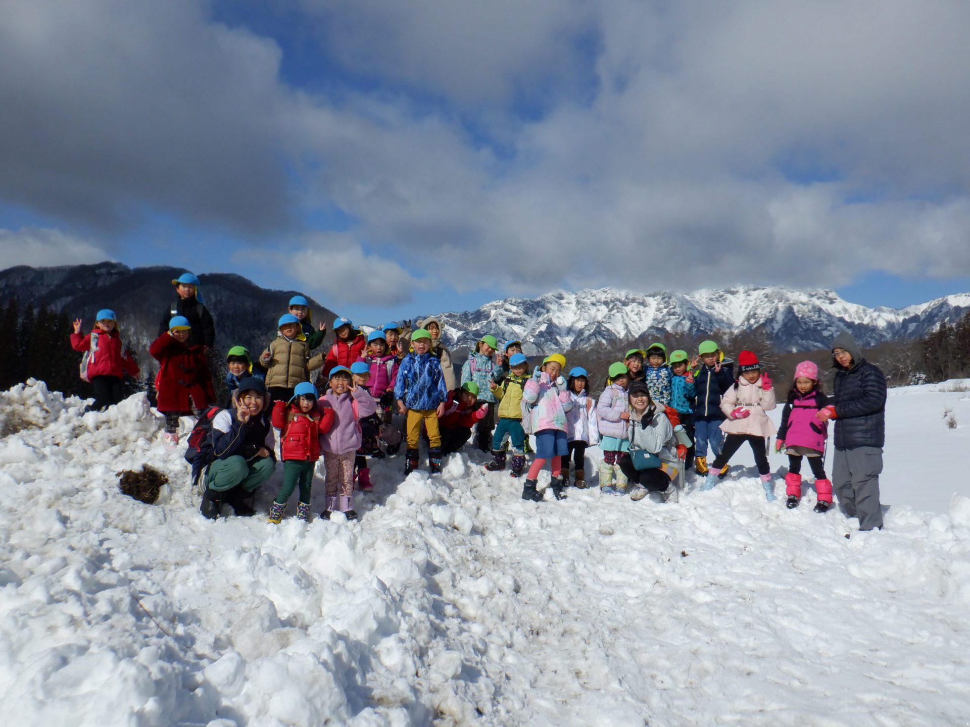 あまりの景色の良さに子どもたちから「みんなで写真撮ろう!!」とリクエストがありました。戸隠山をバックに「ハイ、チーズ!」