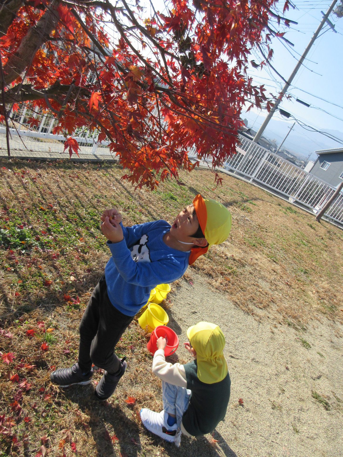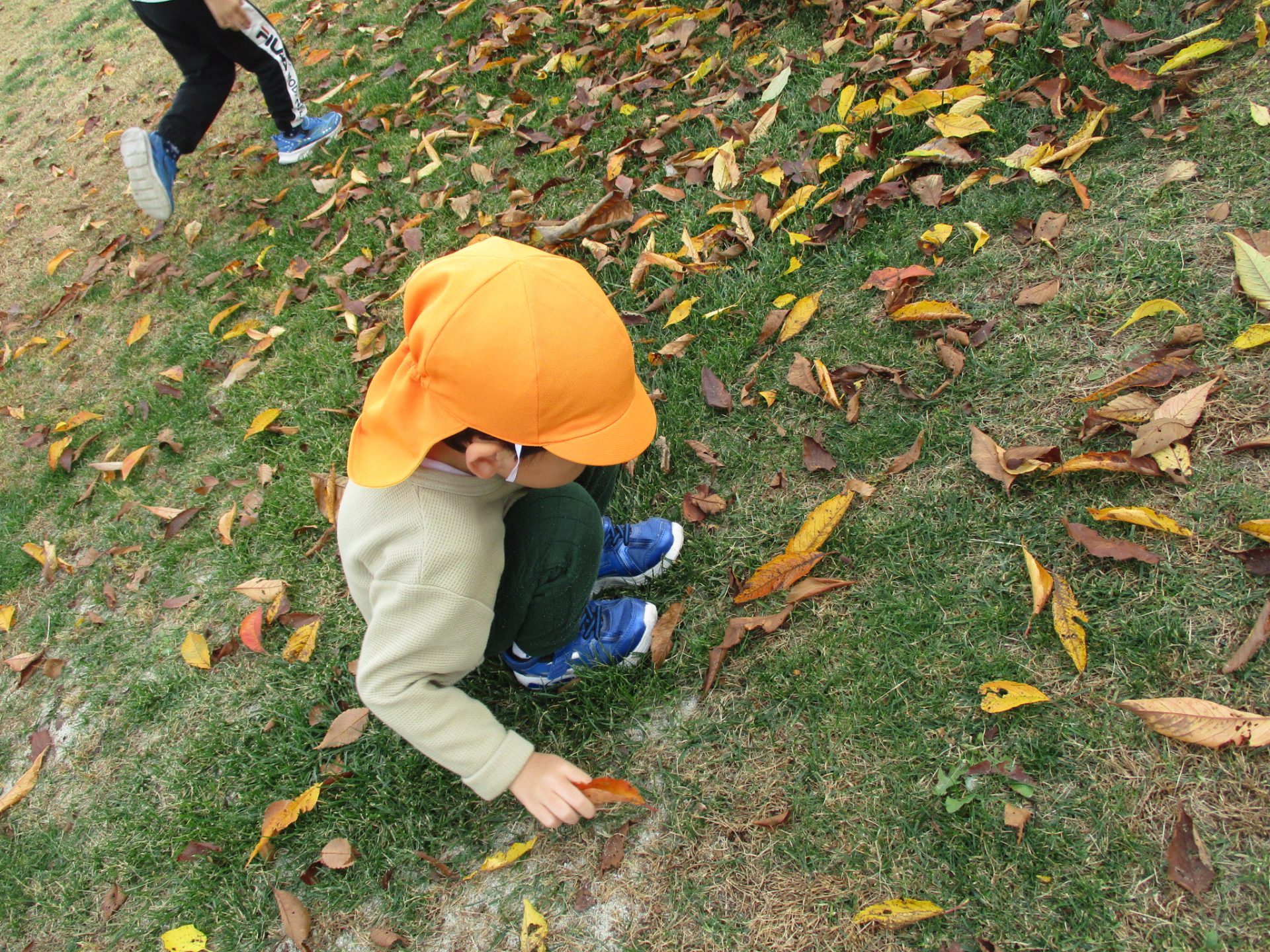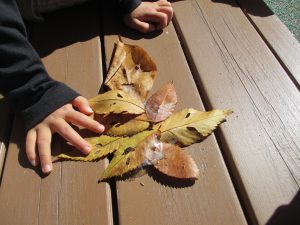 ・園庭の木々から落ちてくる葉っぱを集め、秋の自然にふれる。