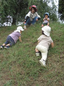 斜面を登るのは大変だけど、登りきると達成感があるようでした。逆に降りてくる時は怖さを感じている様子でした。