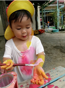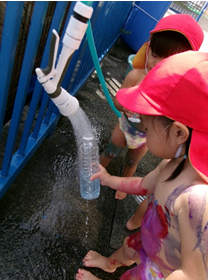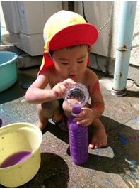 ・お水遊び、プール遊びの延長で絵の具遊びも満喫しました。