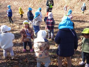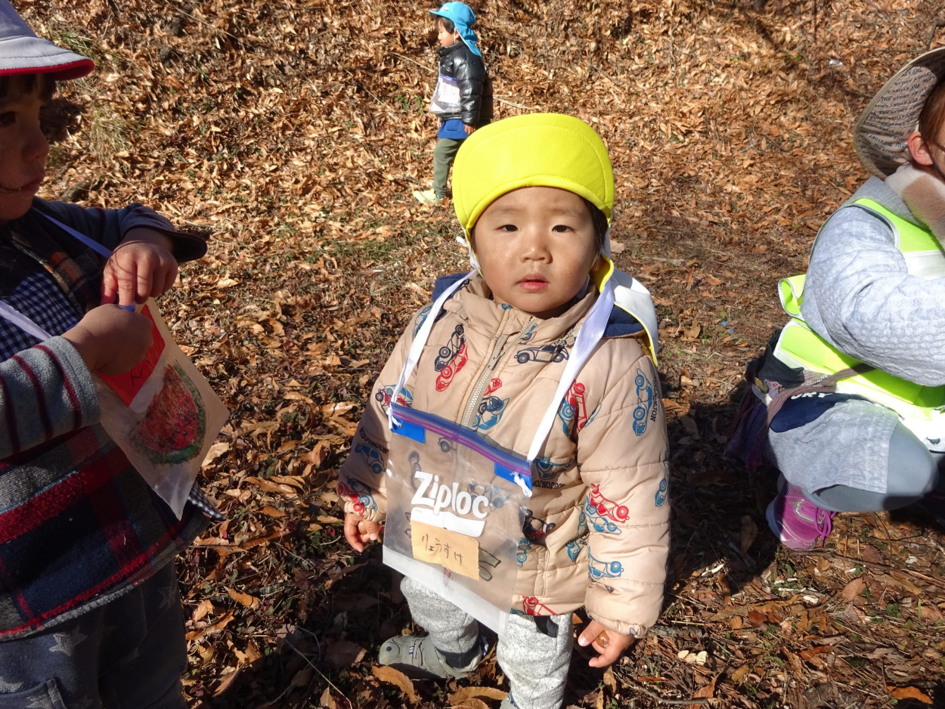 見つけた宝物は年長児さんからもらったお散歩バックに入れ、大事にお家へと持っていく姿がありました。お家の皆さんにも秋を感じてほしいです♪