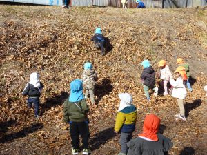 歩く道中も秋を感じ、子どもたちは様々なものに目を向け指さししていました。子どもの一つ一つの発見・小さな感動に保育士も共感することで豊かな心が育っていってほしいと願っています。