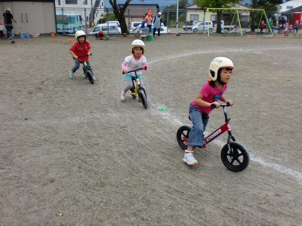 運動会ごっこ以外にもストライダーなどでも楽しんでいます。