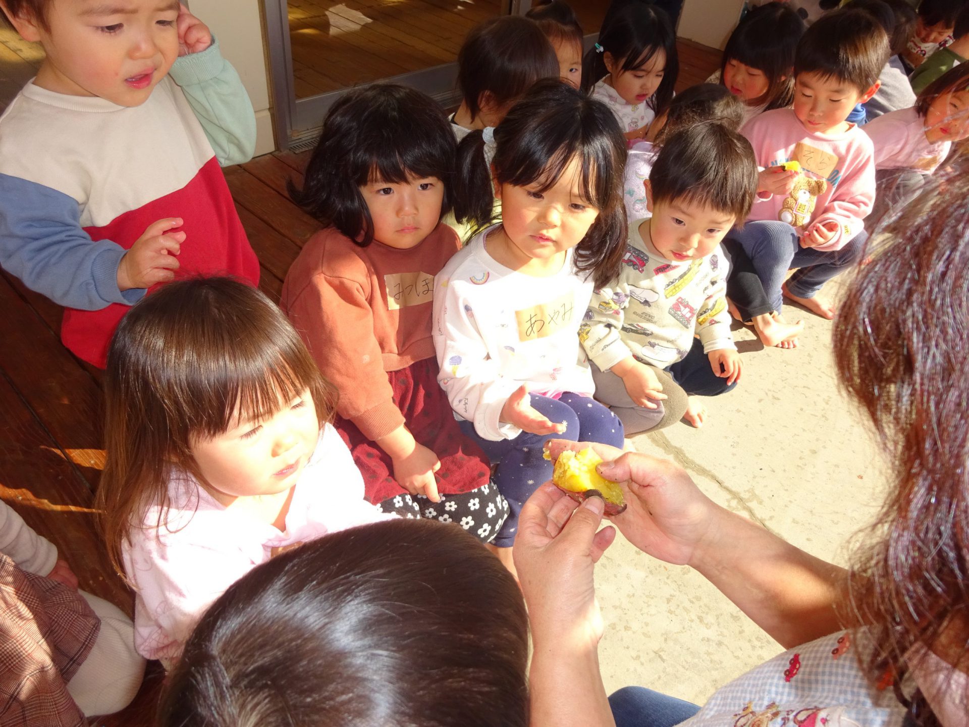 保育士が焼き芋を割る瞬間にくぎ付けです♪