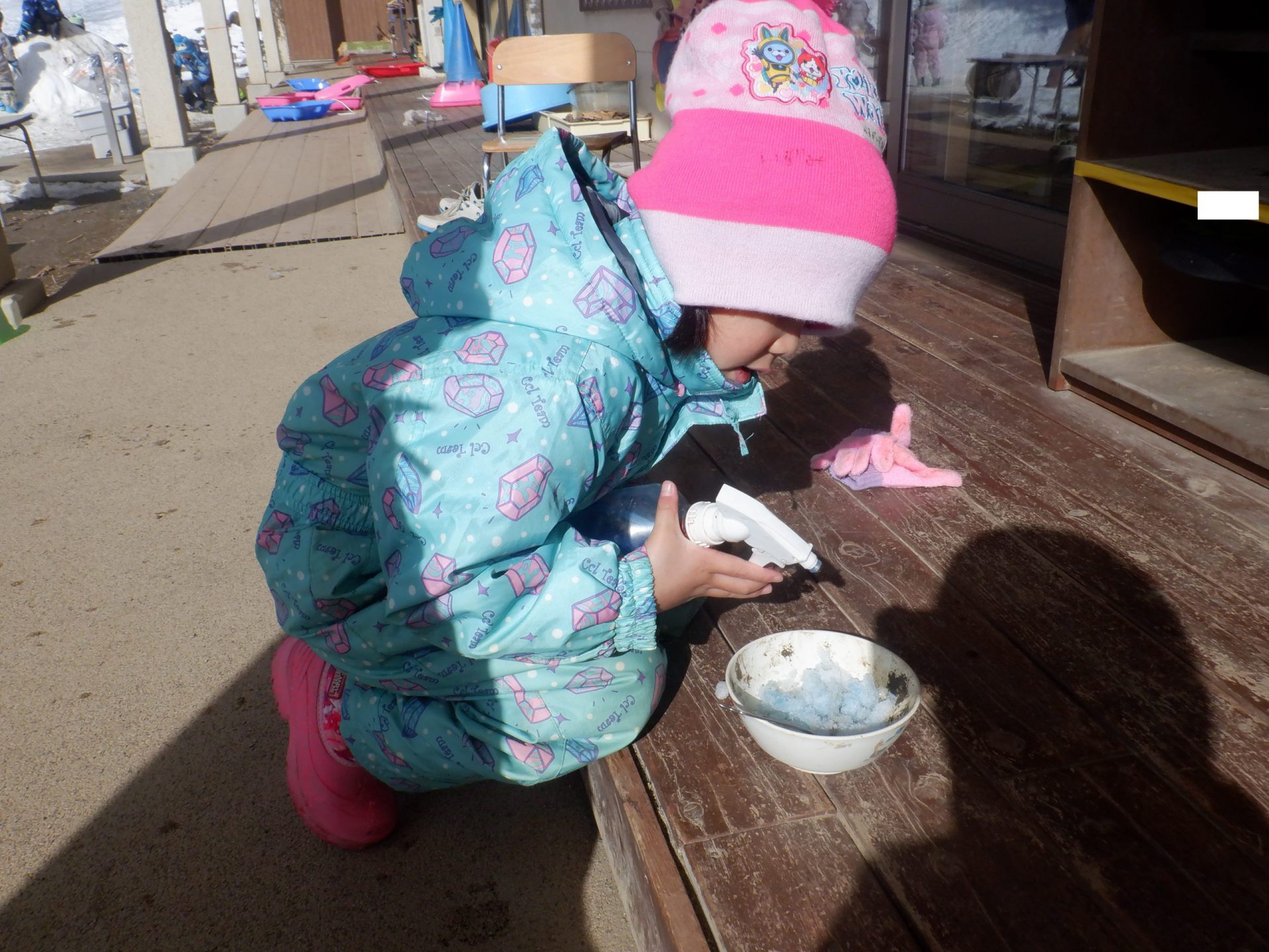 濡れるのは嫌だ……という子ももちろんいて、そうした子はそうした子でシャーベット作りやかき氷を作ったりと、自分らしい遊びを楽しんでいました。「できたよ~!」と誇らし気に持って来る姿は、まぶしいものがありました。