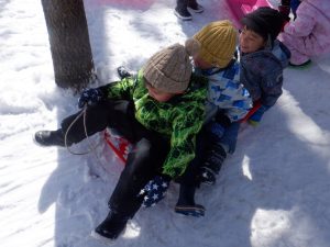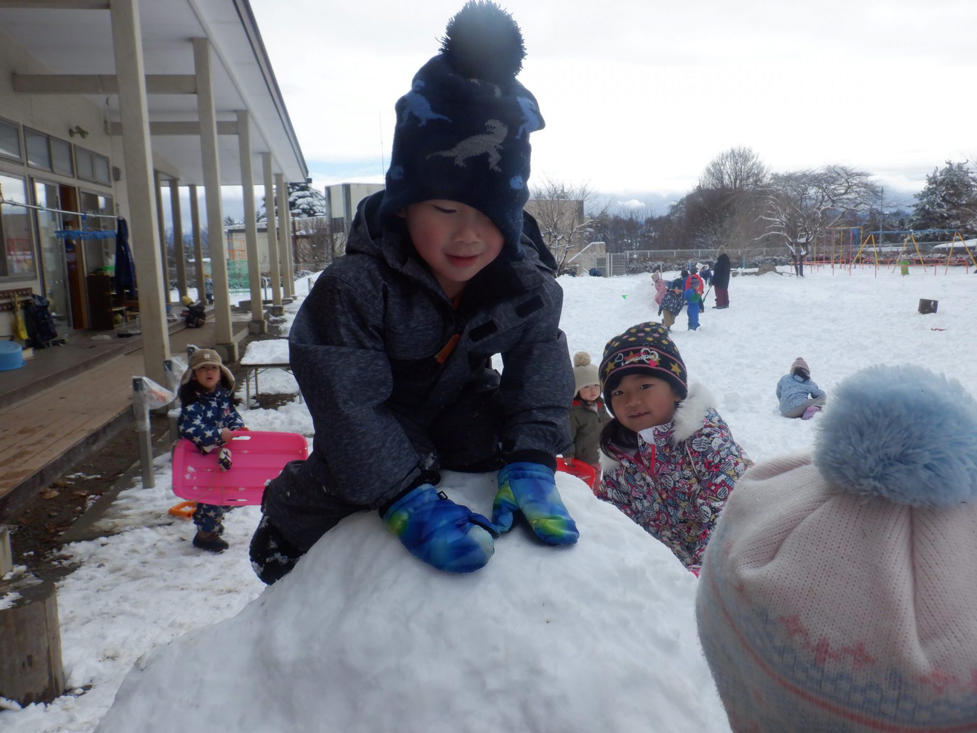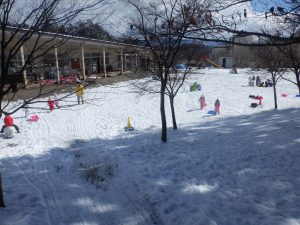 朝から子ども達の顔は少し興奮気味!それもそのはず、こんなにも雪が降り積もったのだから!