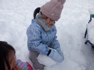 濡れて不快になるのも一つの学び。濡れちゃった子も次の日は違うアプローチで関わろうとする姿から、雪ってみんな大好きなのかもしれませんね。