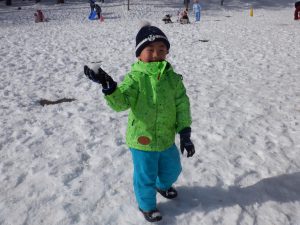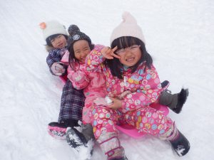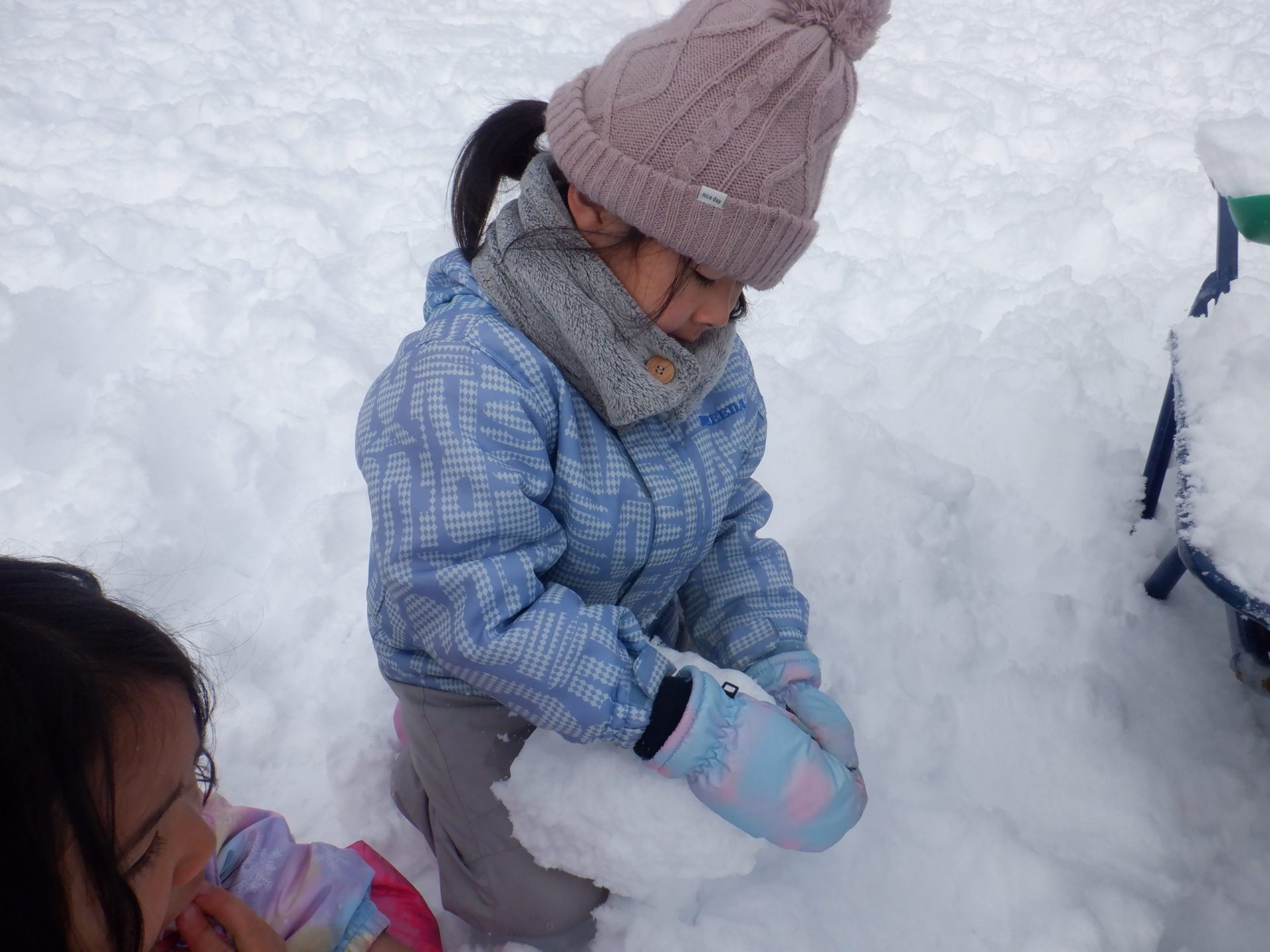 雪合戦は子ども大人関係なく、本気で投げ合っても平気平気(もちろん、雪質によっては加減が必要ですが)!お互いが雪だらけになったのを見て、「あはは!」と豪快に笑う子ども達でした。