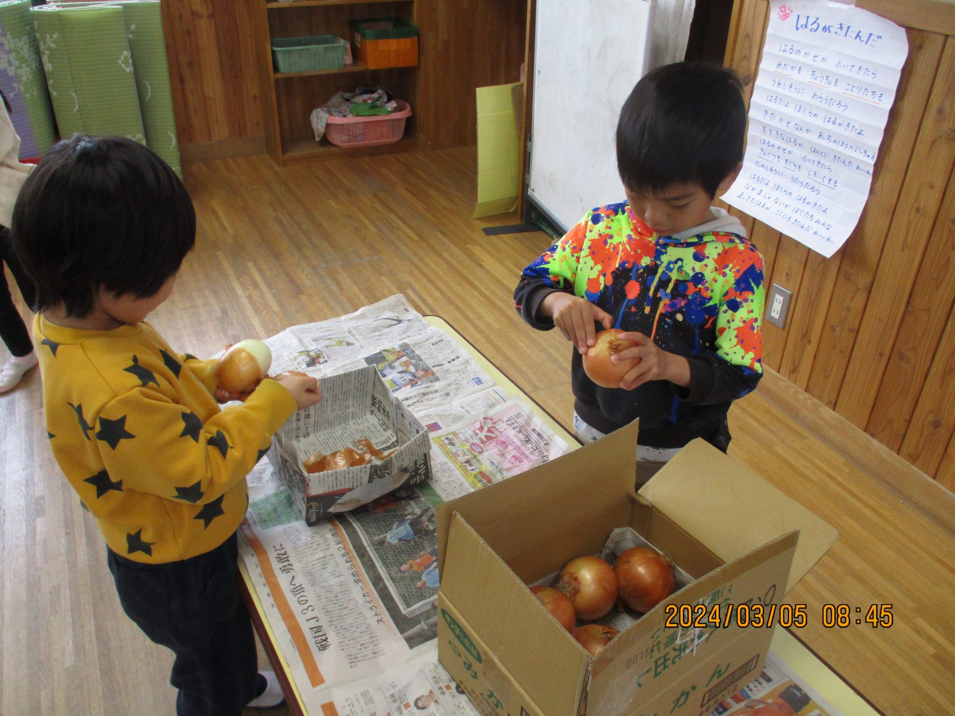 春から給食の先生のお手伝いで、玉ねぎの皮むきをしてきました。