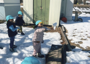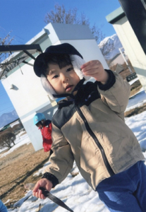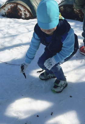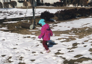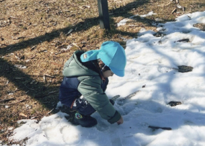 公園につくと雪を見つけ、触ったり丸めたりして雪に触れて遊んだ。
