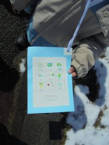 カードにかかれたものを探して、見つけたりチャレンジできたりしたらスタンプを押す、フィールドビンゴをして楽しみました🌷