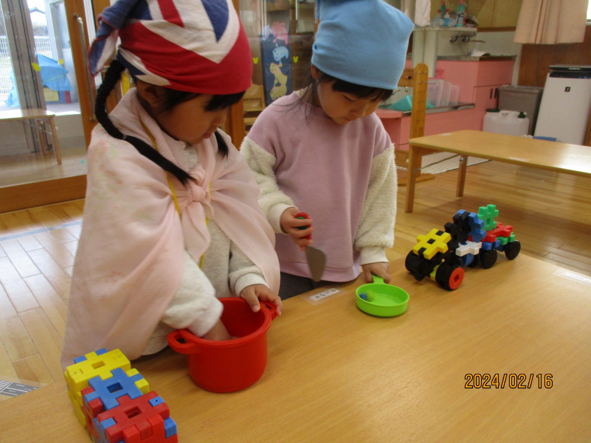 子どもなりの“〜のつもり”もたくさん楽しめるよう、遊びや興味を広げていきたいと思います。