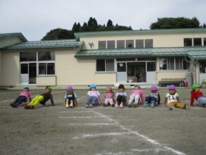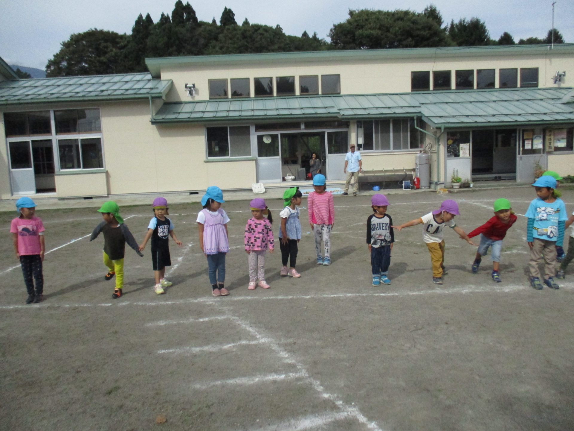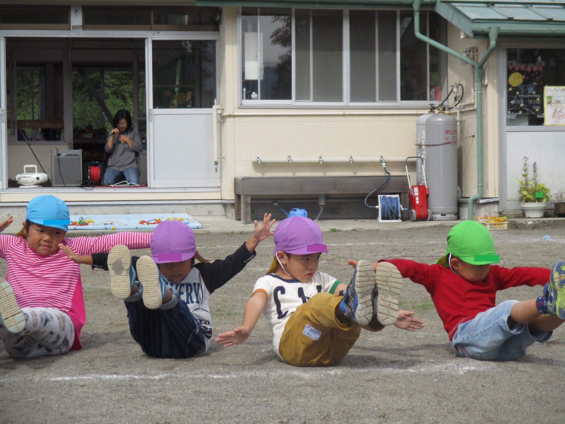 組体操の音楽が流れ、「組体操だ!!」と走る5歳児さん。