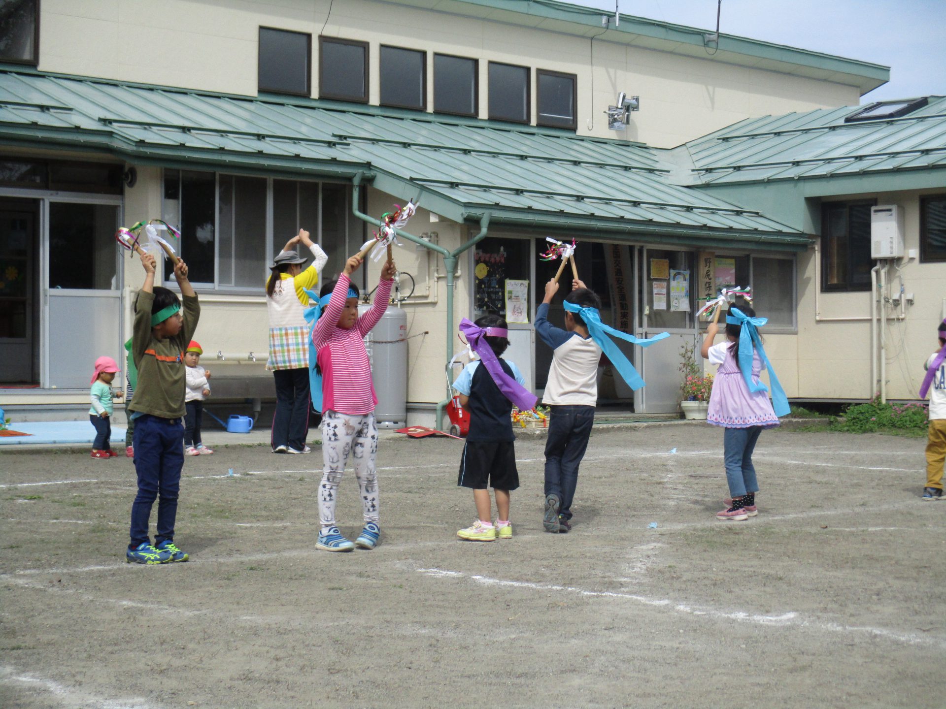 「ソーラン ソーラン」とかっこいい掛け声が、園庭いっぱいに広がりました。