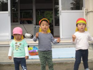 今日の運動会ごっこは、「リレー」と「リズム」を楽しみました。