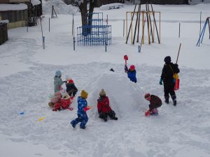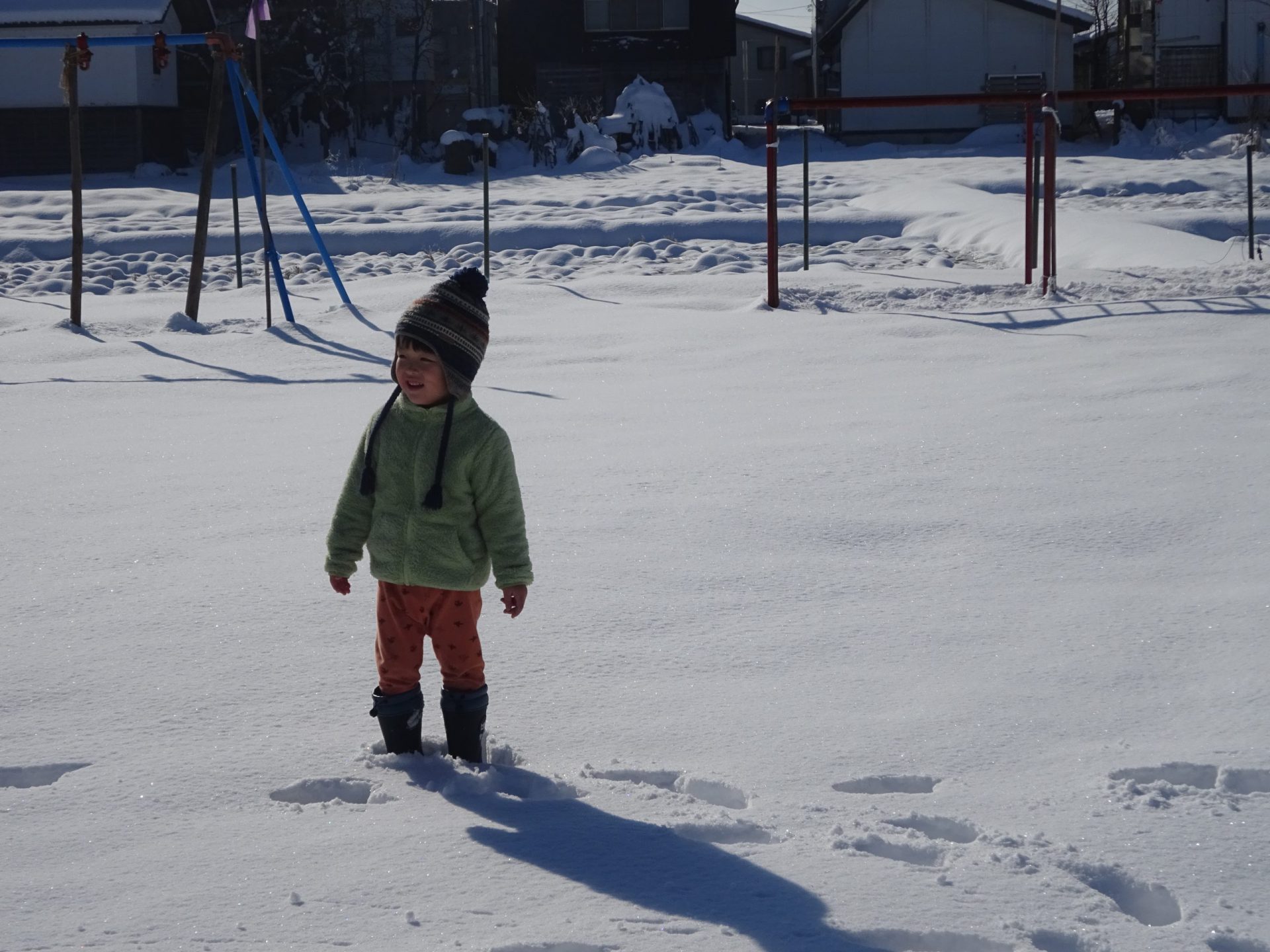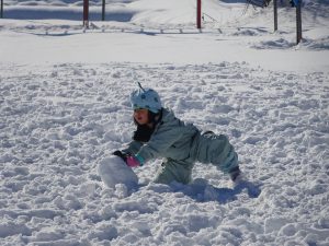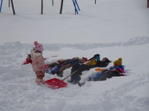 硬い雪やサラサラの雪、雪のいろいろな感触を楽しむ子ども達。